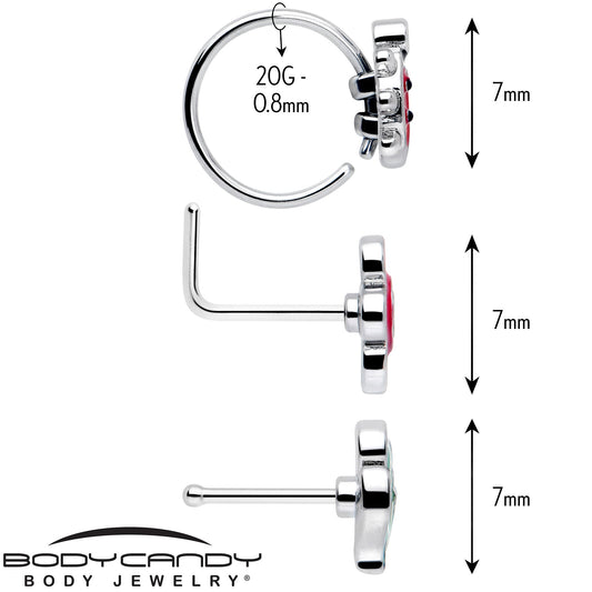 20G Ladybug Hippie Flower Nose Ring Set of 3