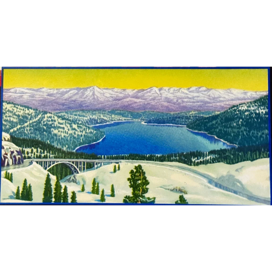 Stunning Vintage Donner Brand Pear Label Showcases Snowy California Lake