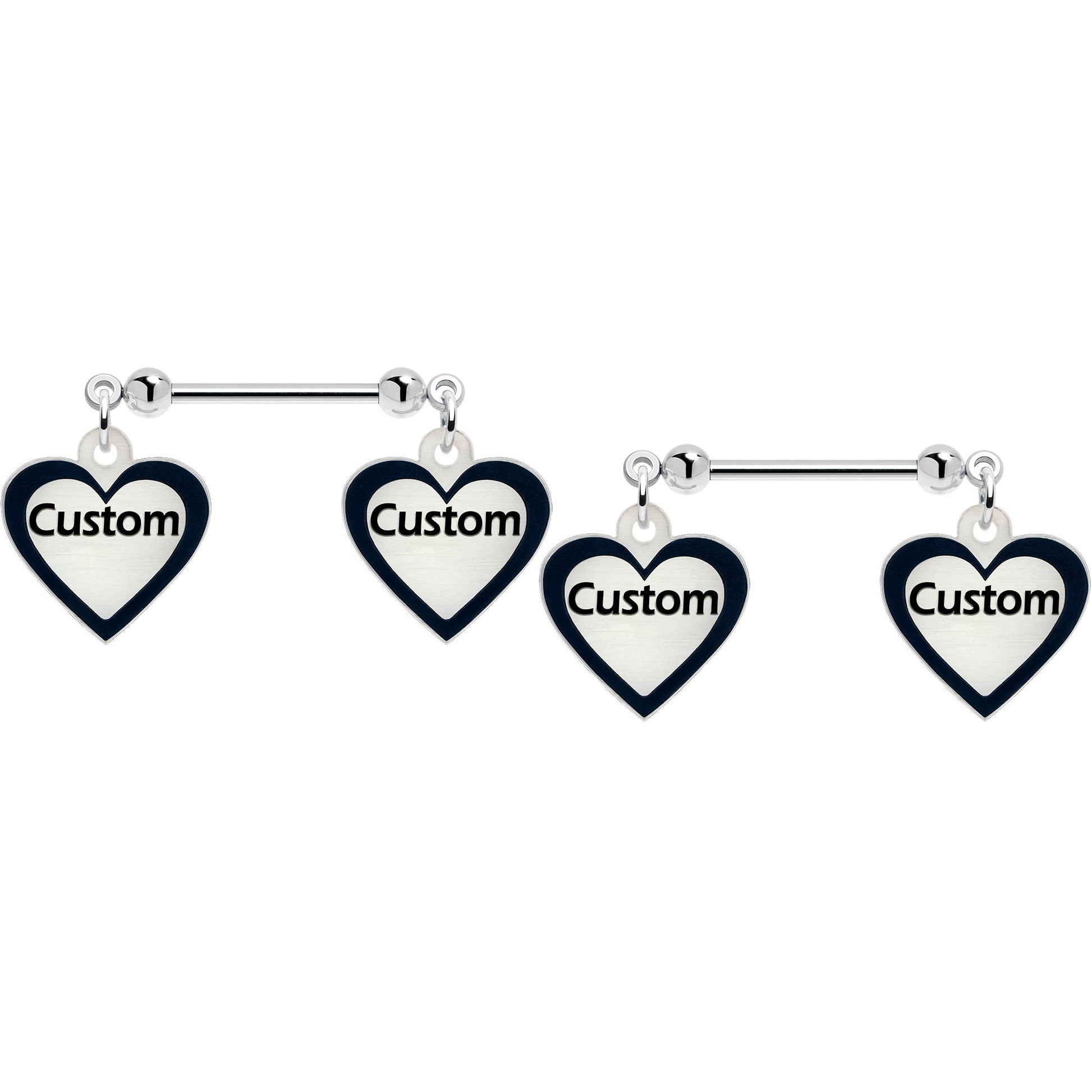 Show off who your heart belongs to with this 14 gauge nipple jewelry that's custom made for you. It's made with 16mm durable 316L surgical grade stainless steel straight barbells with 5mm ball ends.