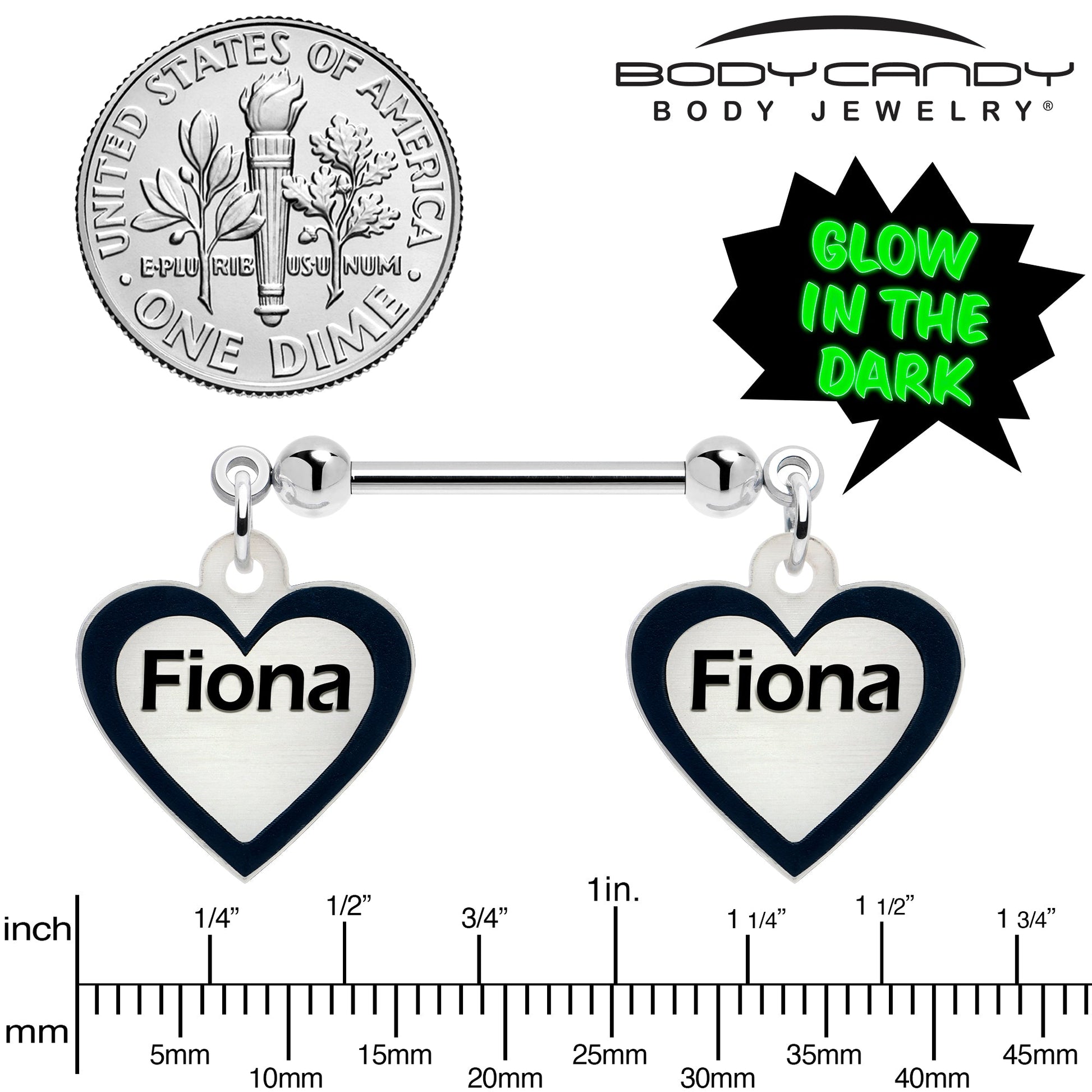 Custom Heart Glow in the Dark Double Personalized Name Dangle Nipple Ring Set