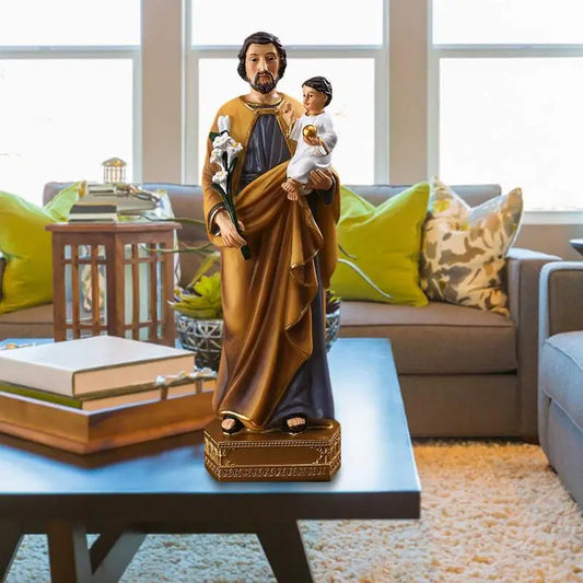 Saint Joseph Carrying Child Jesus Statues Religious Figurines Resin Model Sculpture St. Joseph God Christ Church Desk Decor