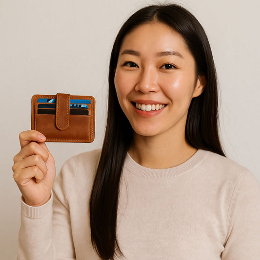 Leather Card Holder Wallet with ID Window - Brown - Miami
