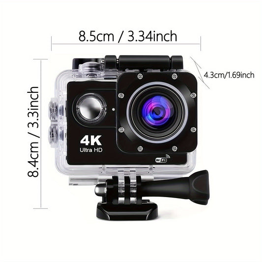 4K Action Camera, with 32G Memory Card, Pre-recording WiFi Camera 170° Remote Control Sports Cameras with Helmet Mount Accessories Kits, for Suitable for Beginners to Take Photos And Record Videos, Christmas, Festival, New Y