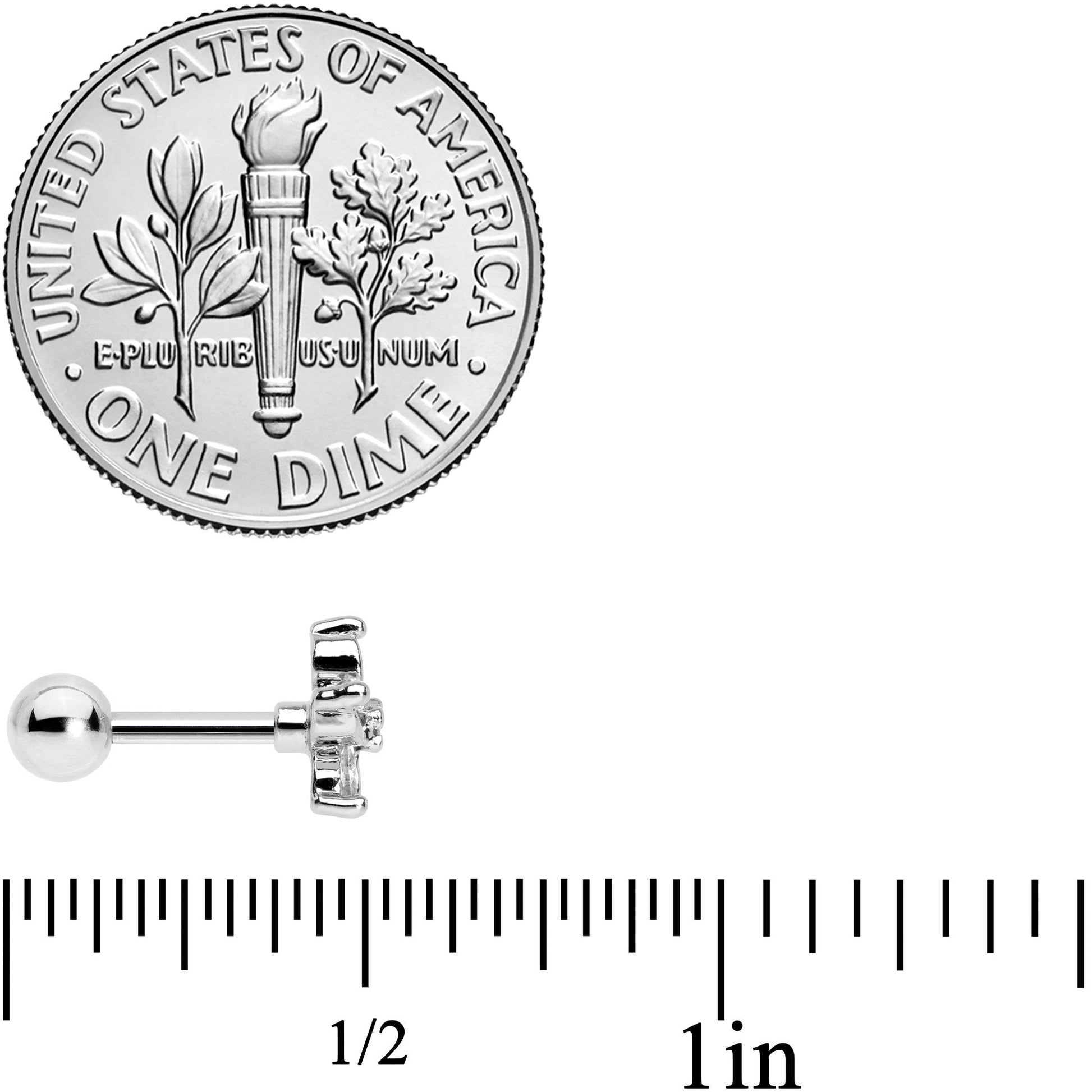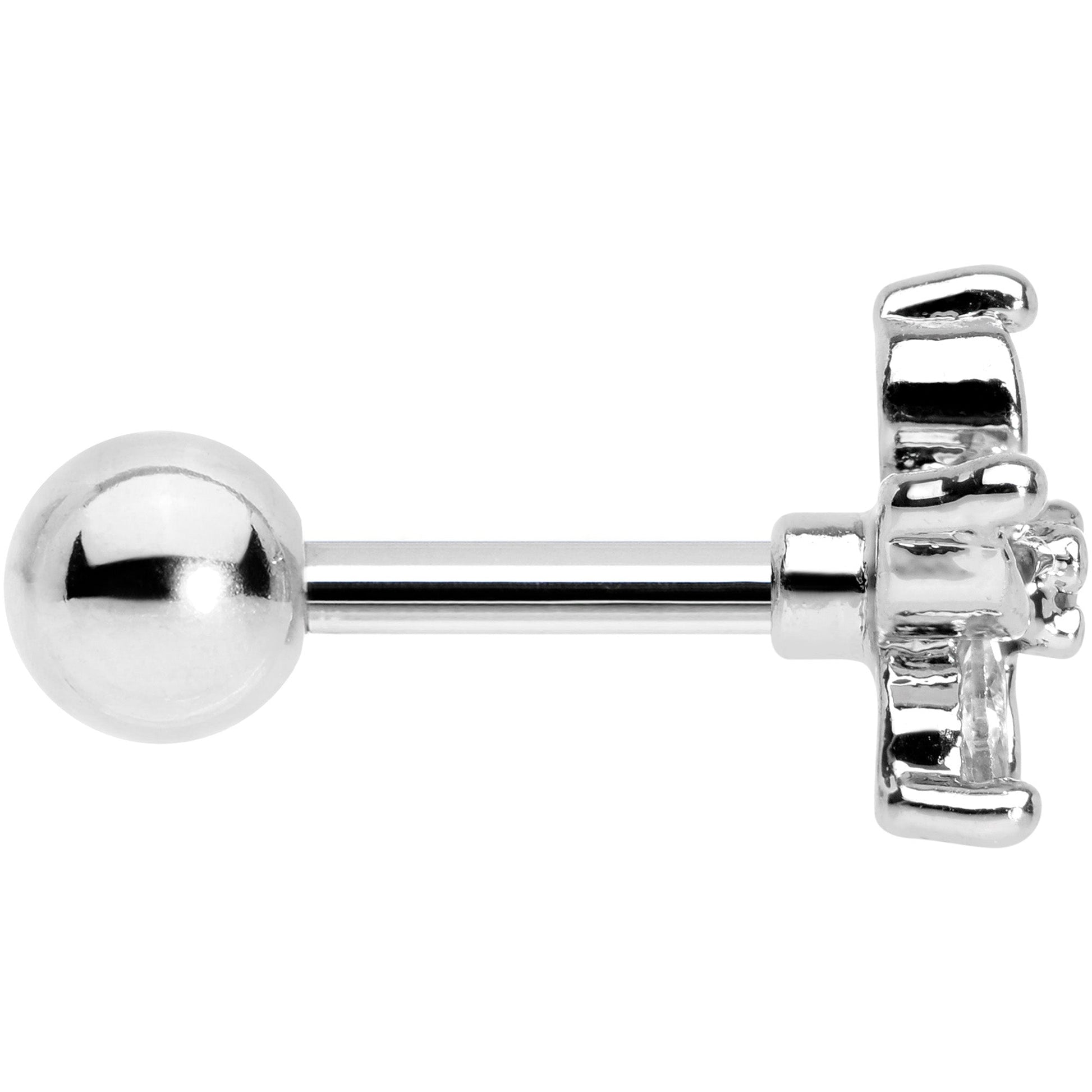What could be prettier than these flower petals in your piercings with this 16 gauge cartilage stud? It's made with a 6mm durable 316L surgical grade stainless steel straight barbell with a 4mm ball end. The front features a flower charm, with each petal composed of a single clear gem. The flower has a matching clear gem at its center for a cohesive appearance. You can also wear this cartilage jewelry in multiple piercings including tragus, helix, and some conch piercings. Flaunt a flower all year round with the pretty petals on this tragus stud!