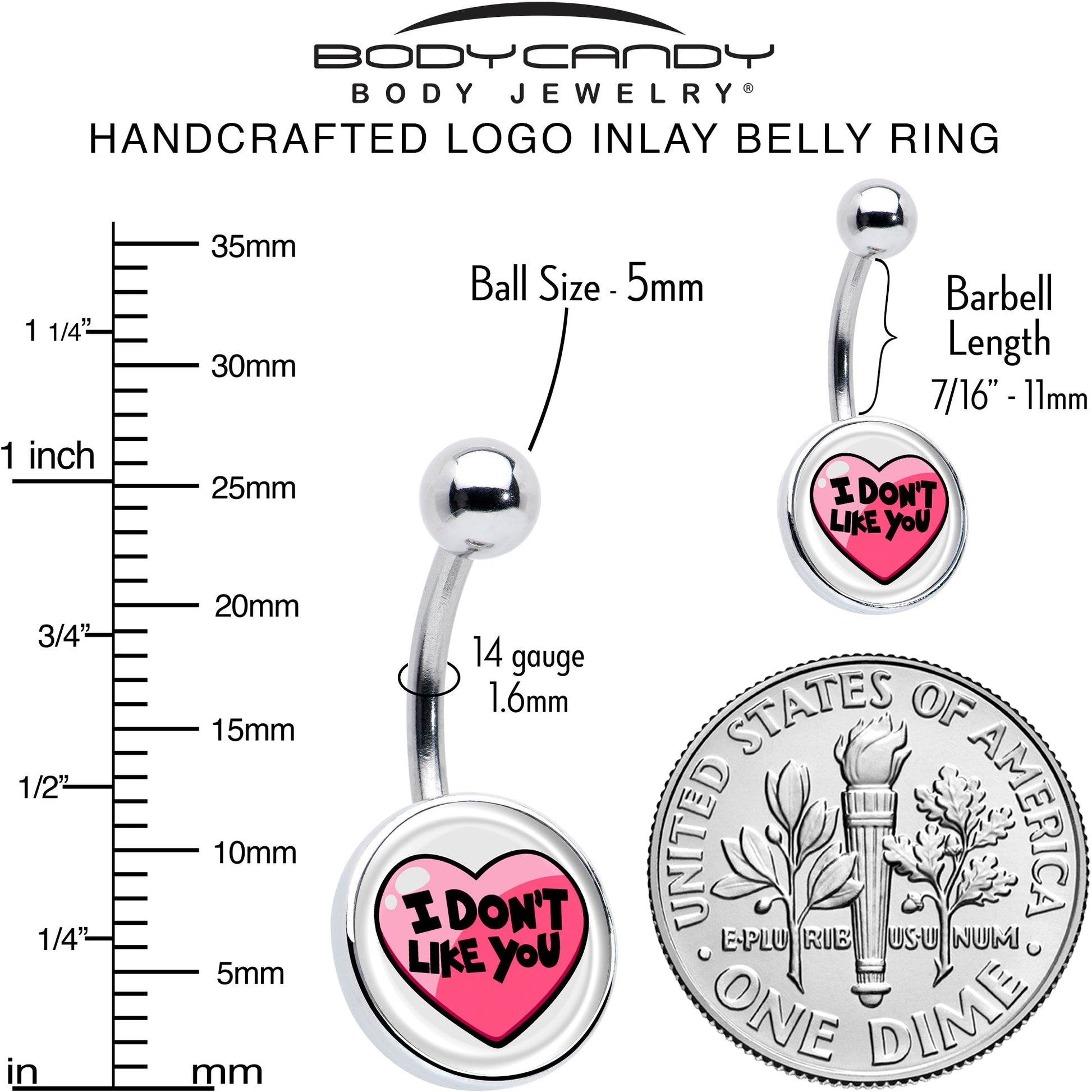 Show Off Your Anti-Valentine Vibes! Make a bold statement this Valentine’s Day (or any day) with our I Don’t Like You Valentine Heart Belly Ring.