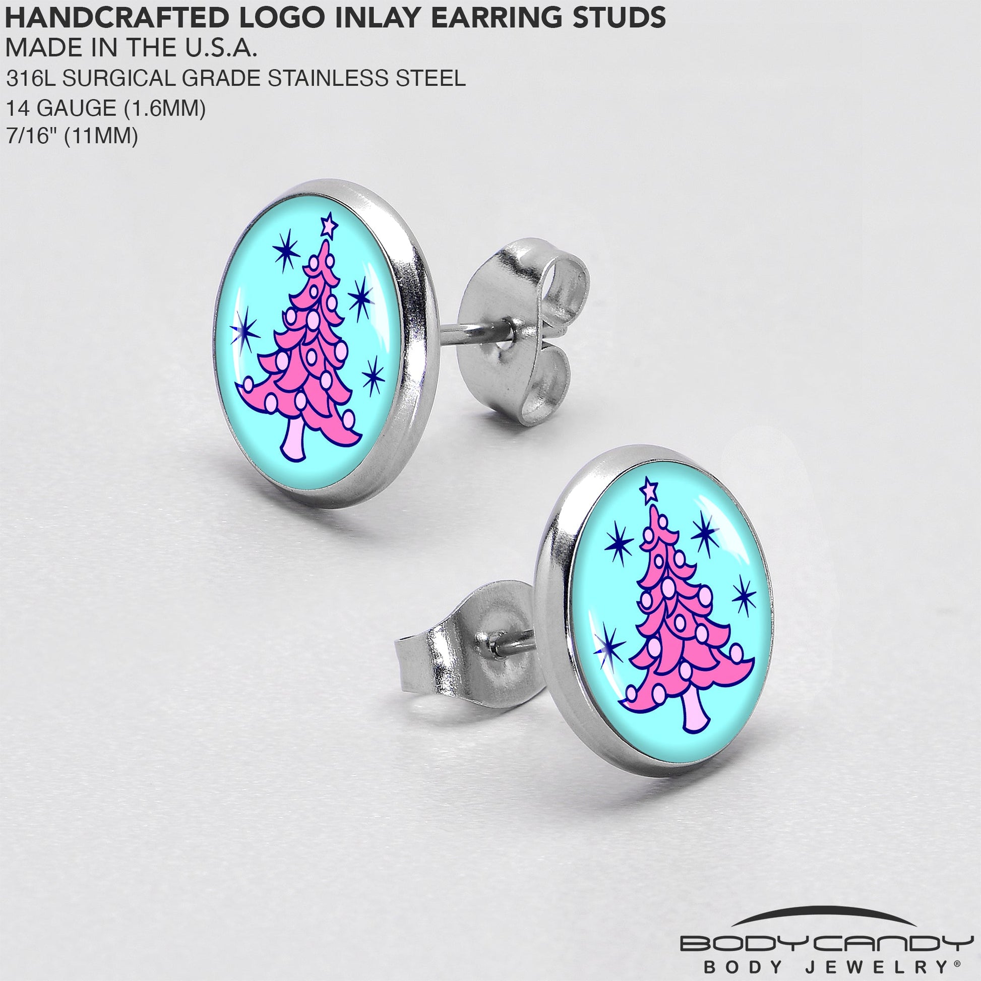 Hypoallergenic jewelry for sensitive skin.Pastel Christmas Tree Holiday Stud Earrings