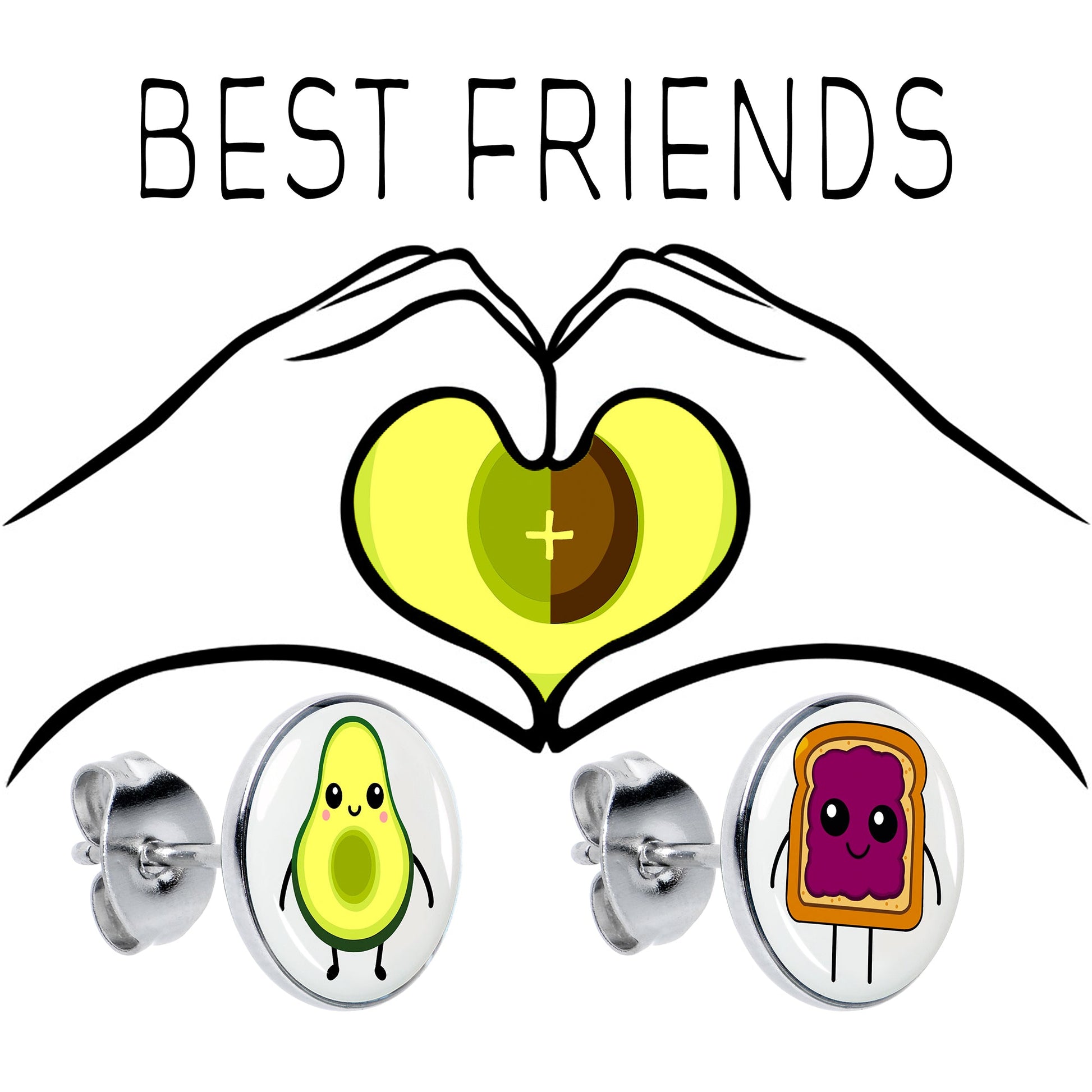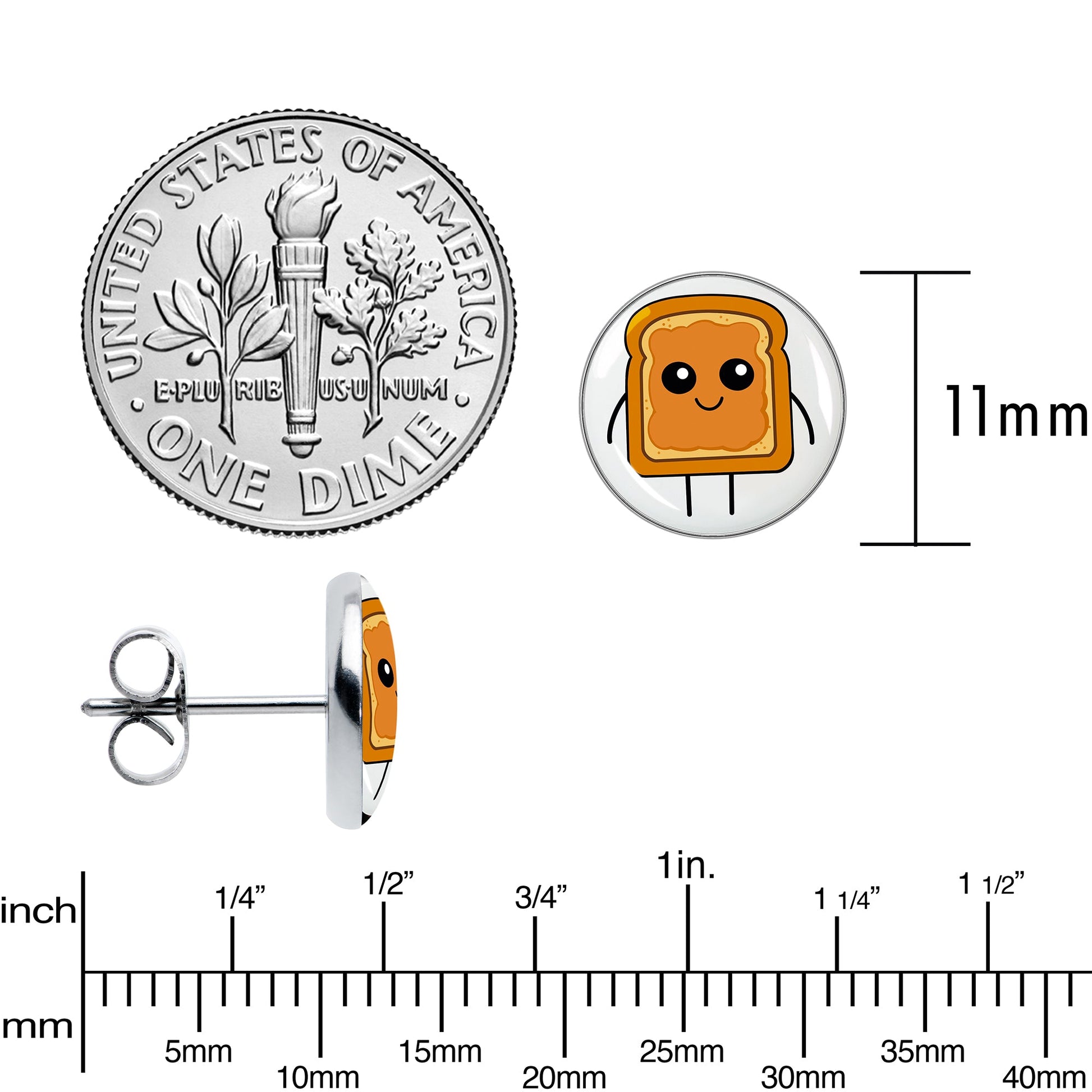 Some things are just made to go together, like the sweet sandwich halves on these stud earrings for pierced ears. They are made with stainless steel straight posts with friction backs for a secure fit. They each feature one half of the same sandwich, both with sweetly wide eyed expressions. One is spread with peanut butter, the other with jelly for the perfect combo. These pierced earrings are sure to be a perfect pair. Sold as a set of two.