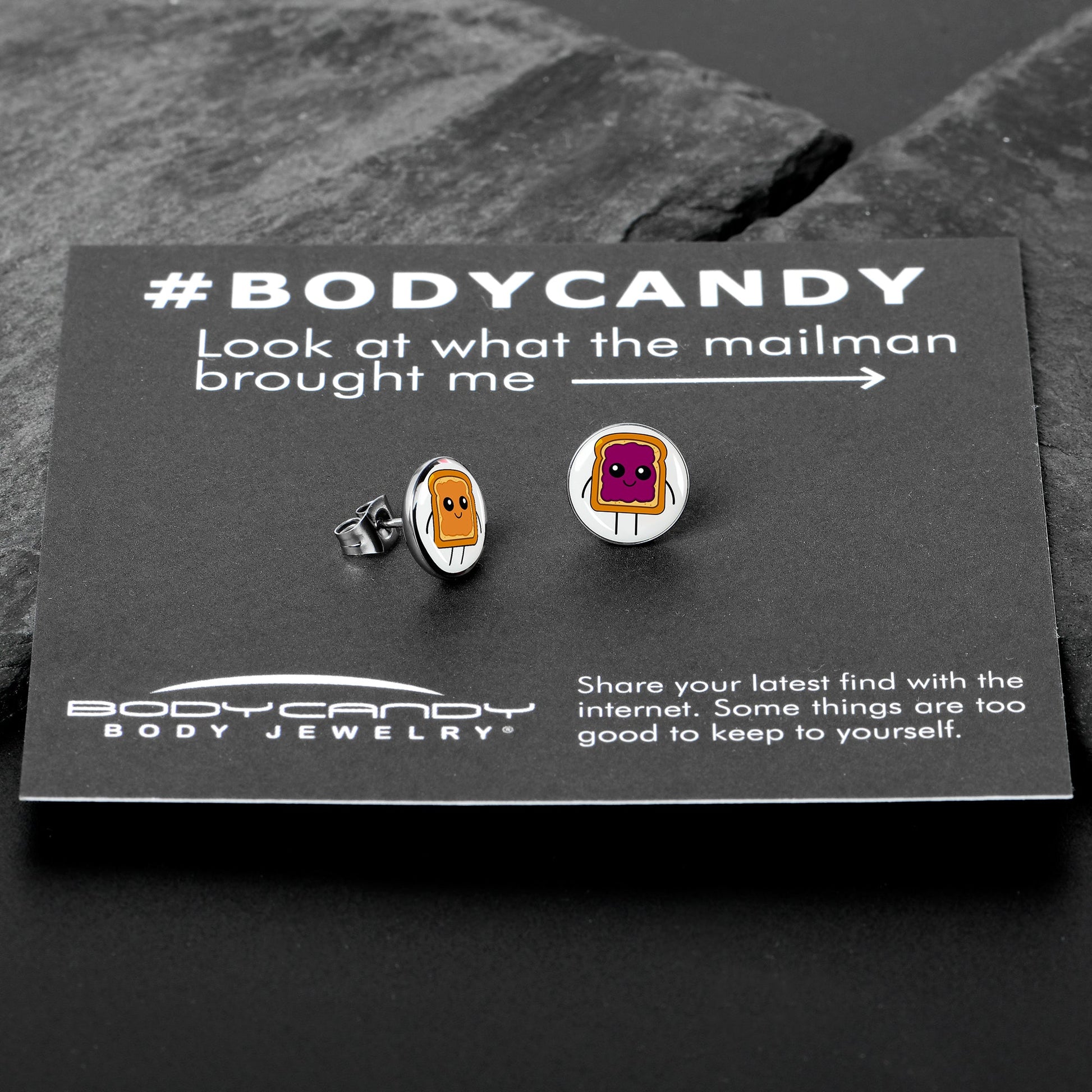 Hypoallergenic jewelry for sensitive skin.PB and J Peanut Butter and Jelly Sandwich Stud Earrings