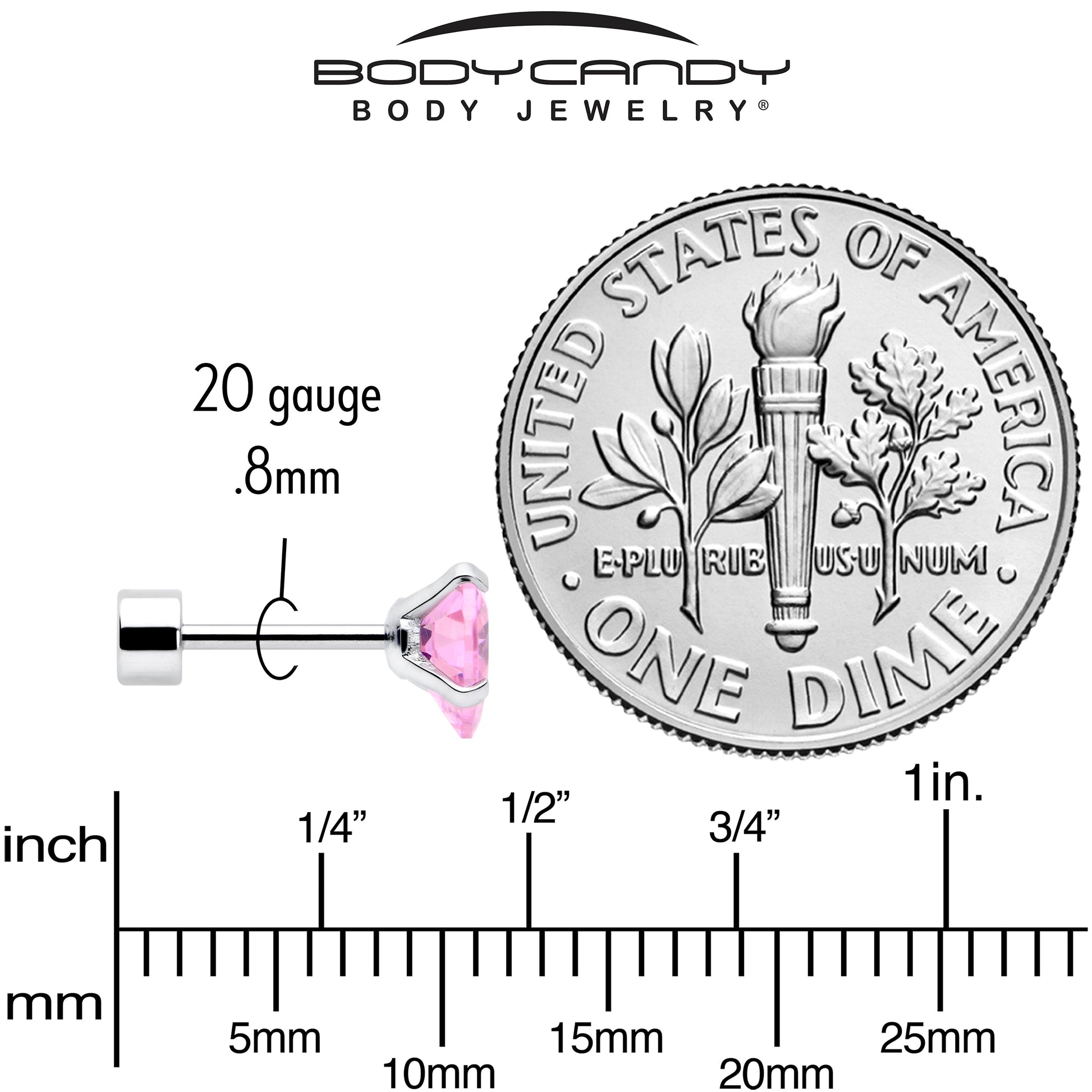 Pink Heart CZ Flat Back Stud Earrings - 3 Pairs