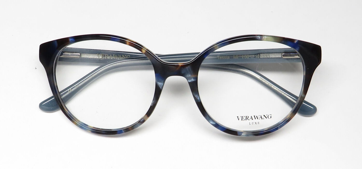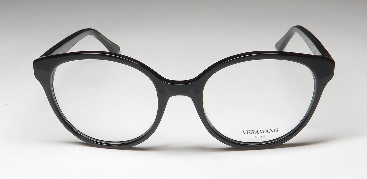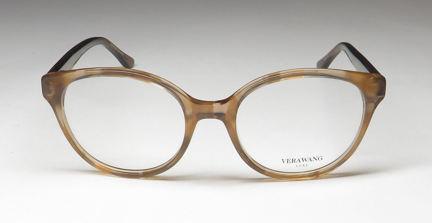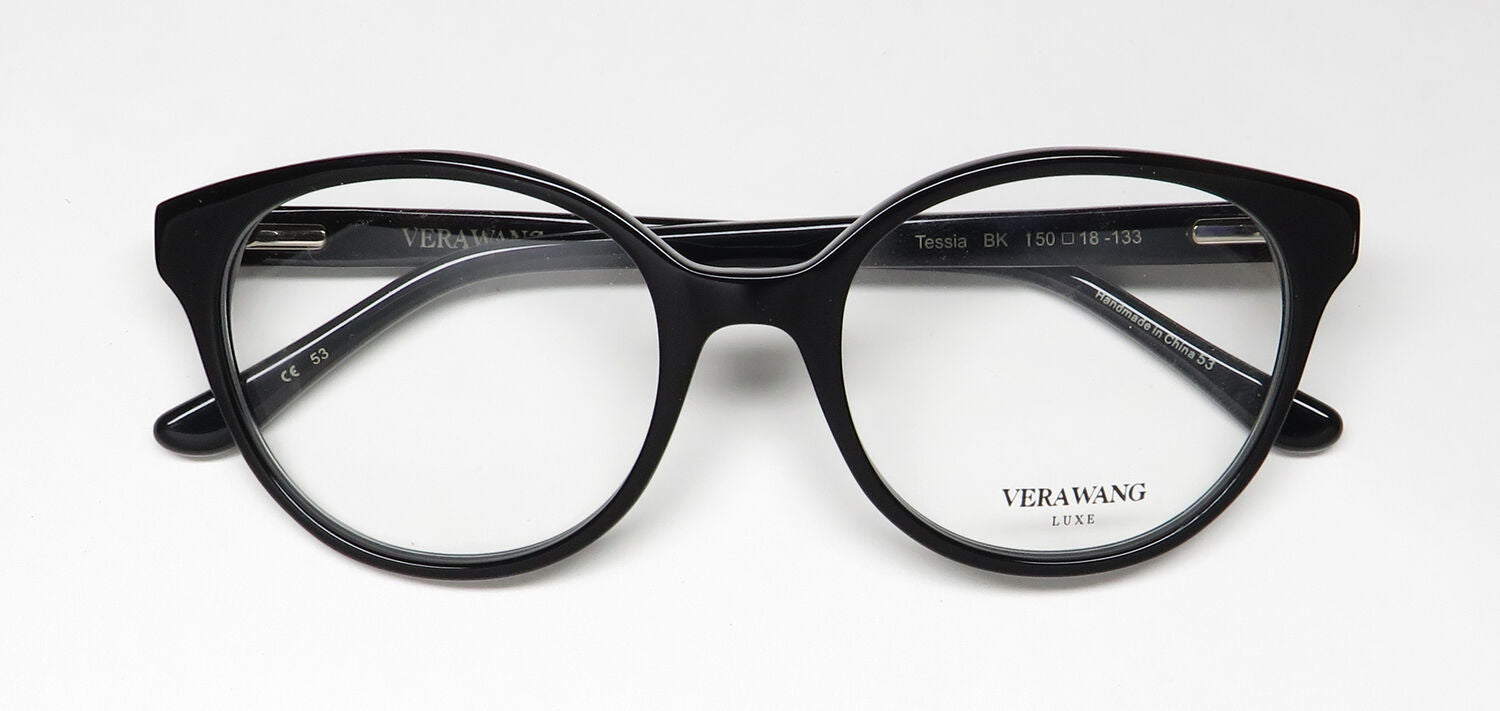 The frame is sold with demo lenses that have a logo stamped on them in ink. The frame can be fitted with real lenses at most optical stores. This frame provides comfortable fit and flatters a variety of face shapes. These eyeglasses are crafted from high quality, durable premium acetate plastic. The frame has spring hinges. Spring hinge temples prevent you from stretching the fit of your glasses and ensure that they remain intact and not become loose or out of shape. This frame is from exclusive Luxe collection. This is a flagship line of eyewear manufactured by Vera Wang from highest quality materials. Original case is included. The glasses are made in China.