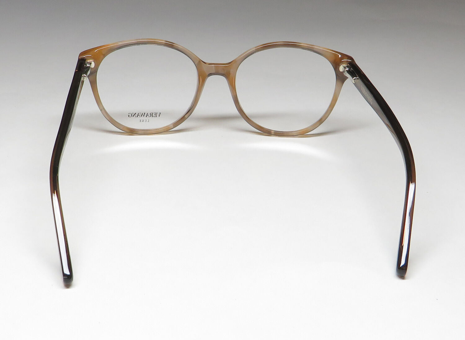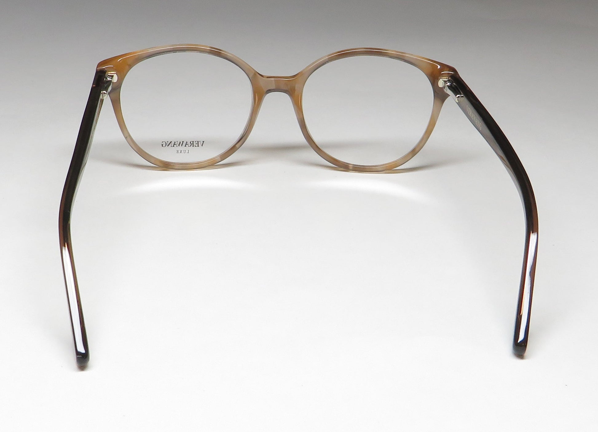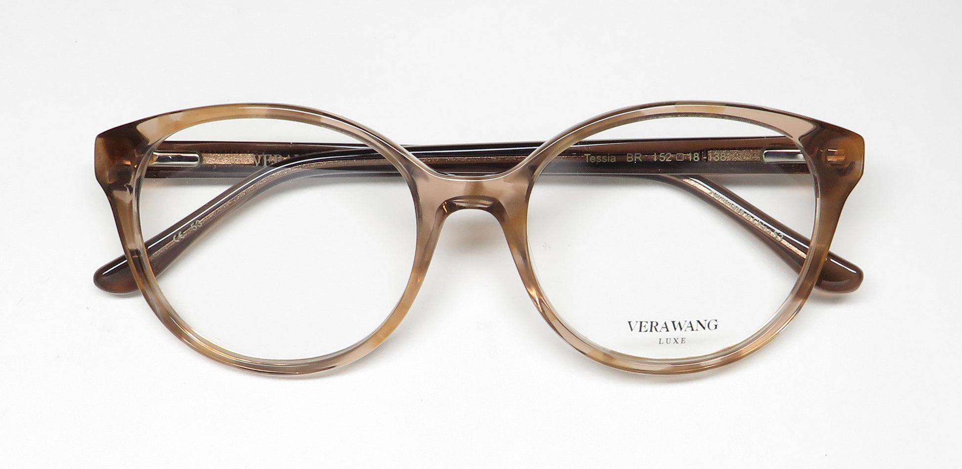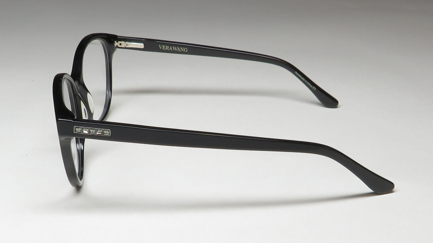 The frame is sold with demo lenses that have a logo stamped on them in ink. The frame can be fitted with real lenses at most optical stores. This frame provides comfortable fit and flatters a variety of face shapes. These eyeglasses are crafted from high quality, durable premium acetate plastic. The frame has spring hinges. Spring hinge temples prevent you from stretching the fit of your glasses and ensure that they remain intact and not become loose or out of shape. This frame is from exclusive Luxe collection. This is a flagship line of eyewear manufactured by Vera Wang from highest quality materials. Original case is included. The glasses are made in China.