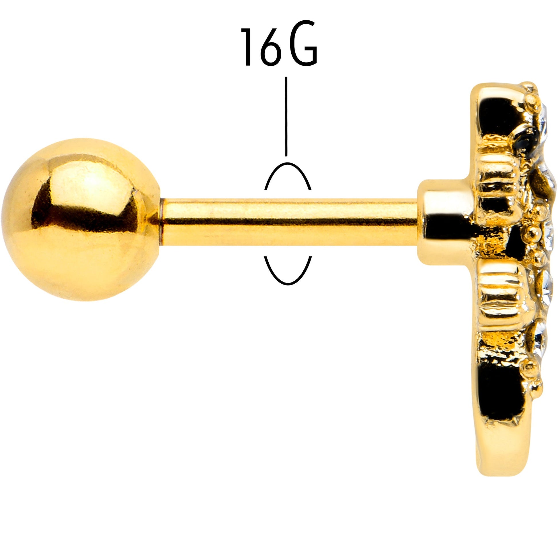 16 Gauge 1/4 Clear Gem Gold Tone Luscious Lizard Cartilage Earring