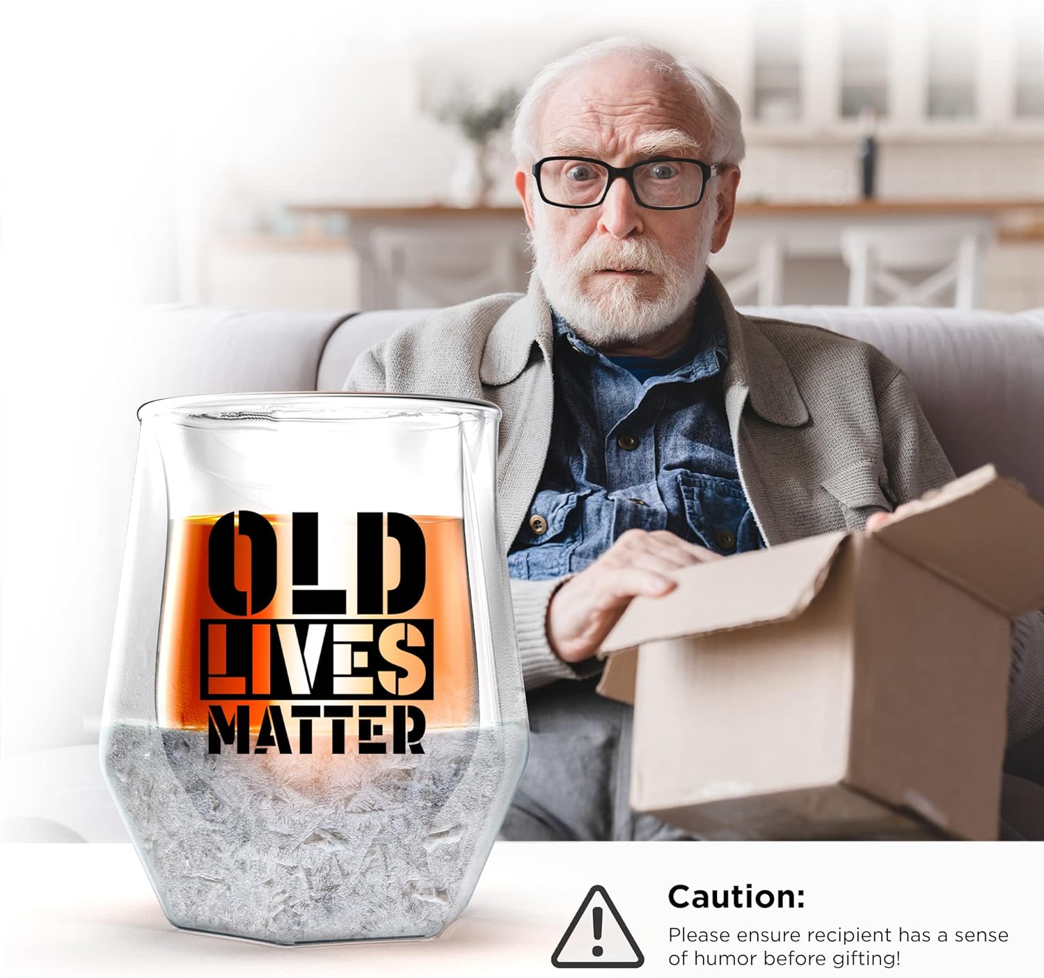 Freezer Whiskey Glass Gift for Old Dads and Grandads - Funny 7oz Insulated Frozen Drinking Glass, Gift for Uncle, Grandpa or any Dear Old Chap (Christmas, Birthday or Retirement)
