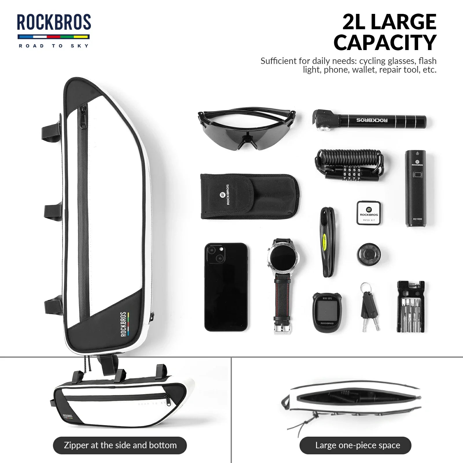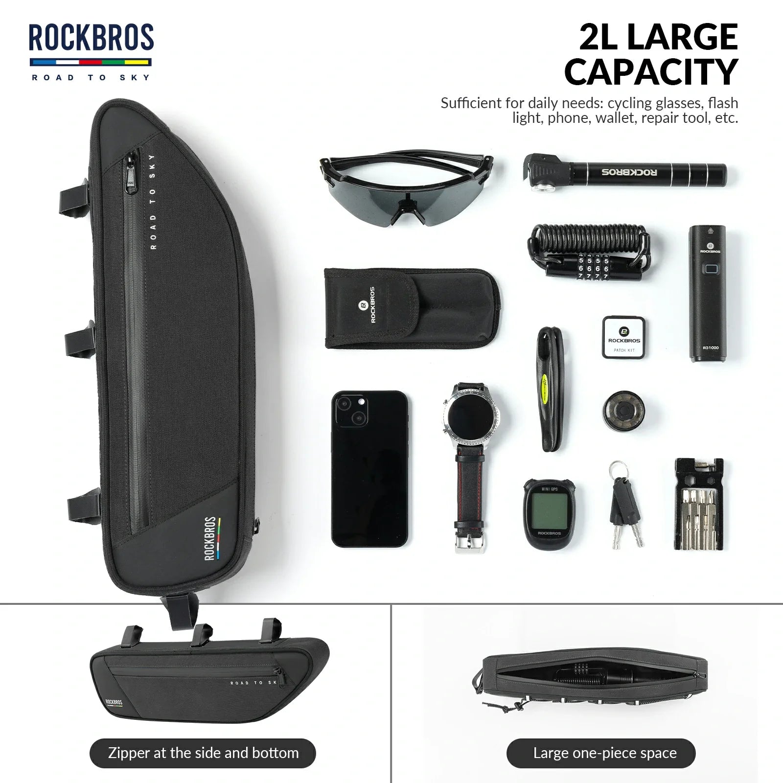 ✔ 2L Large Capacity – Plenty of room for tools, snacks, and essentials