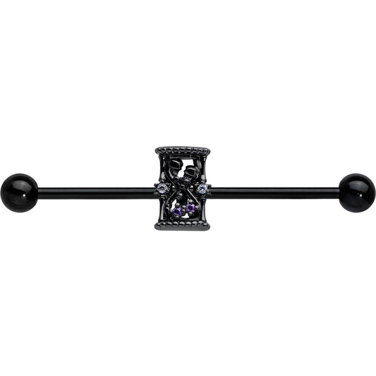 14G Purple Gem Black Gothic Hourglass Industrial Barbell 38mm