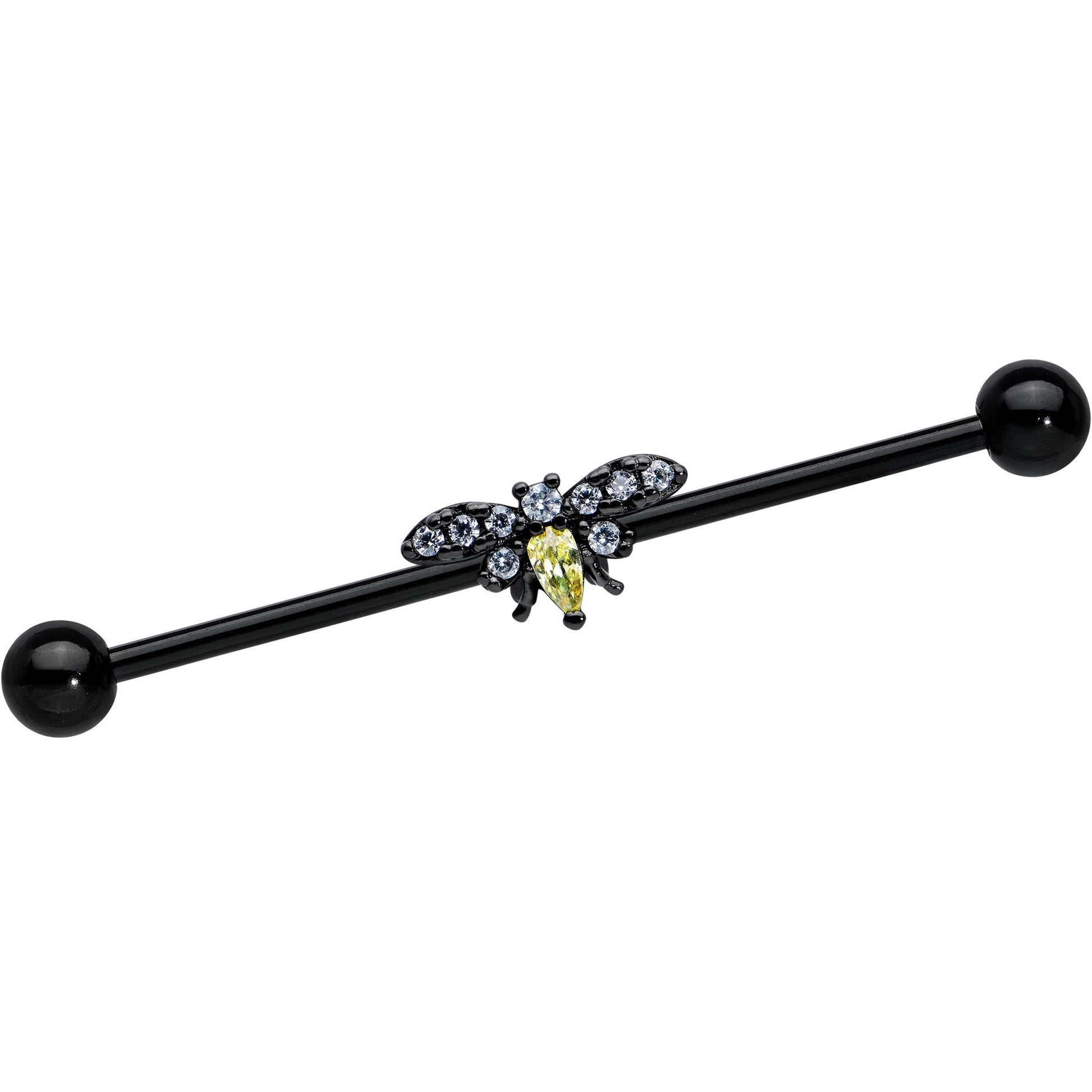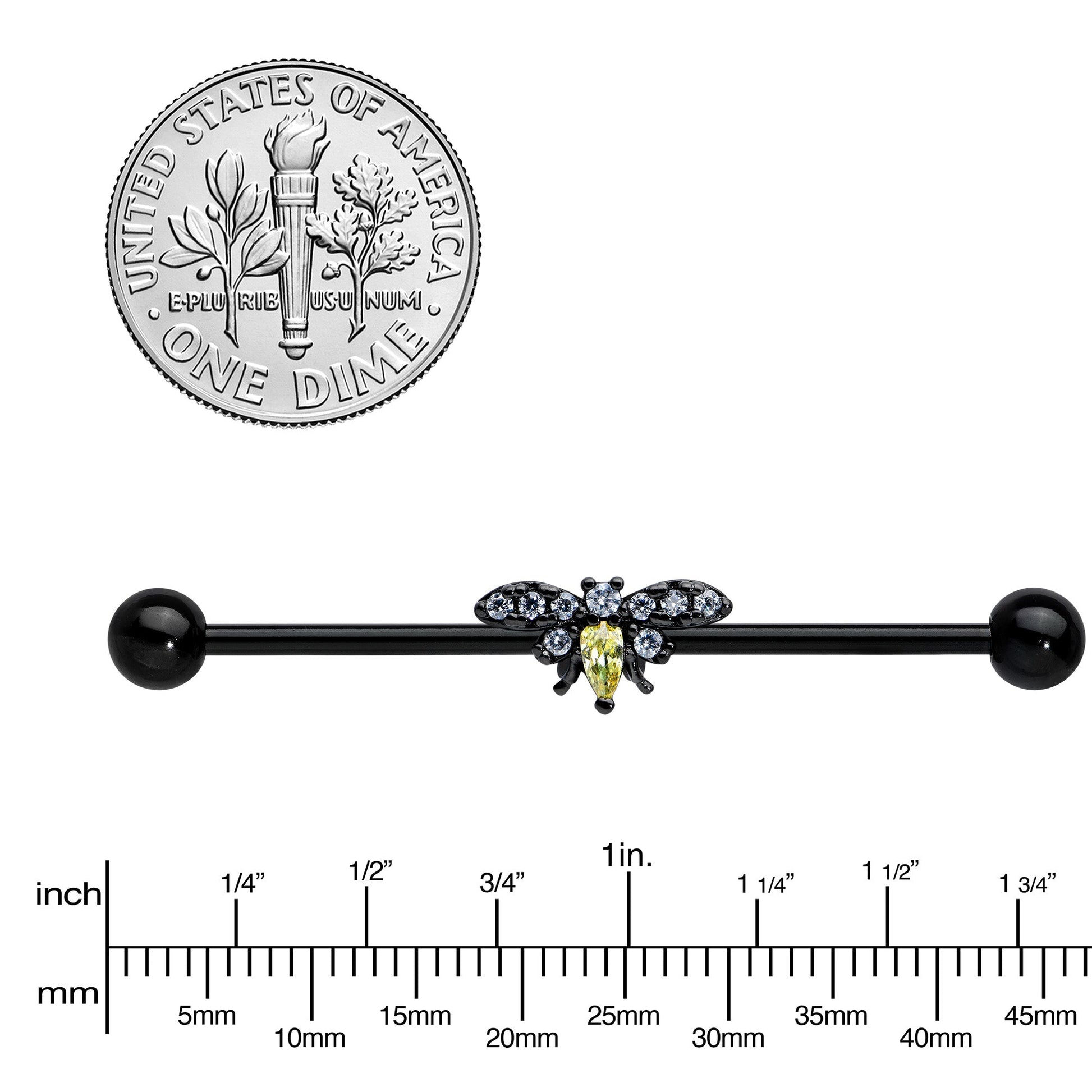 14 Gauge Yellow Clear Gem Black Butterfly Industrial Barbell 38mm