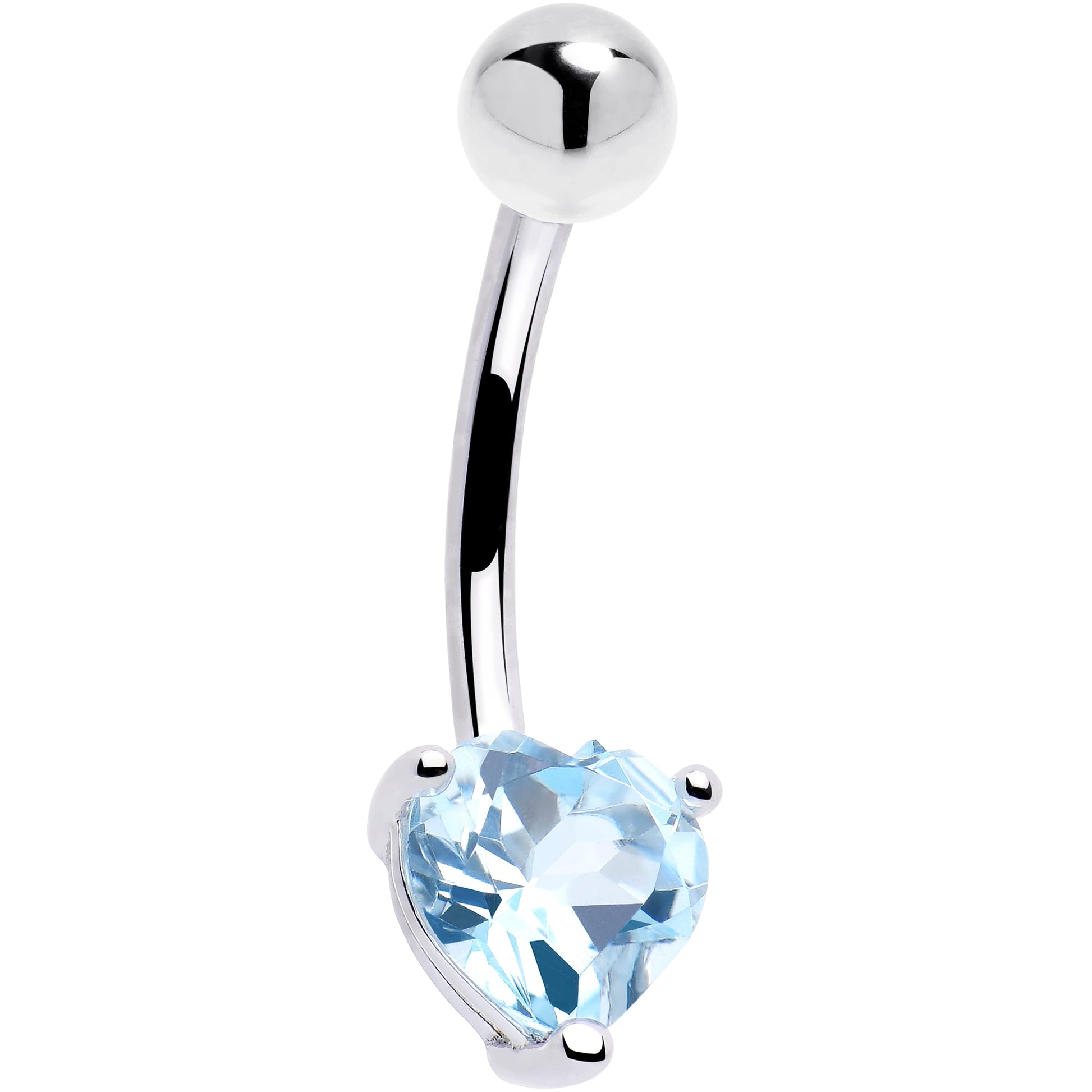 16G 14k White Gold Genuine Blue Topaz Heart Belly Ring