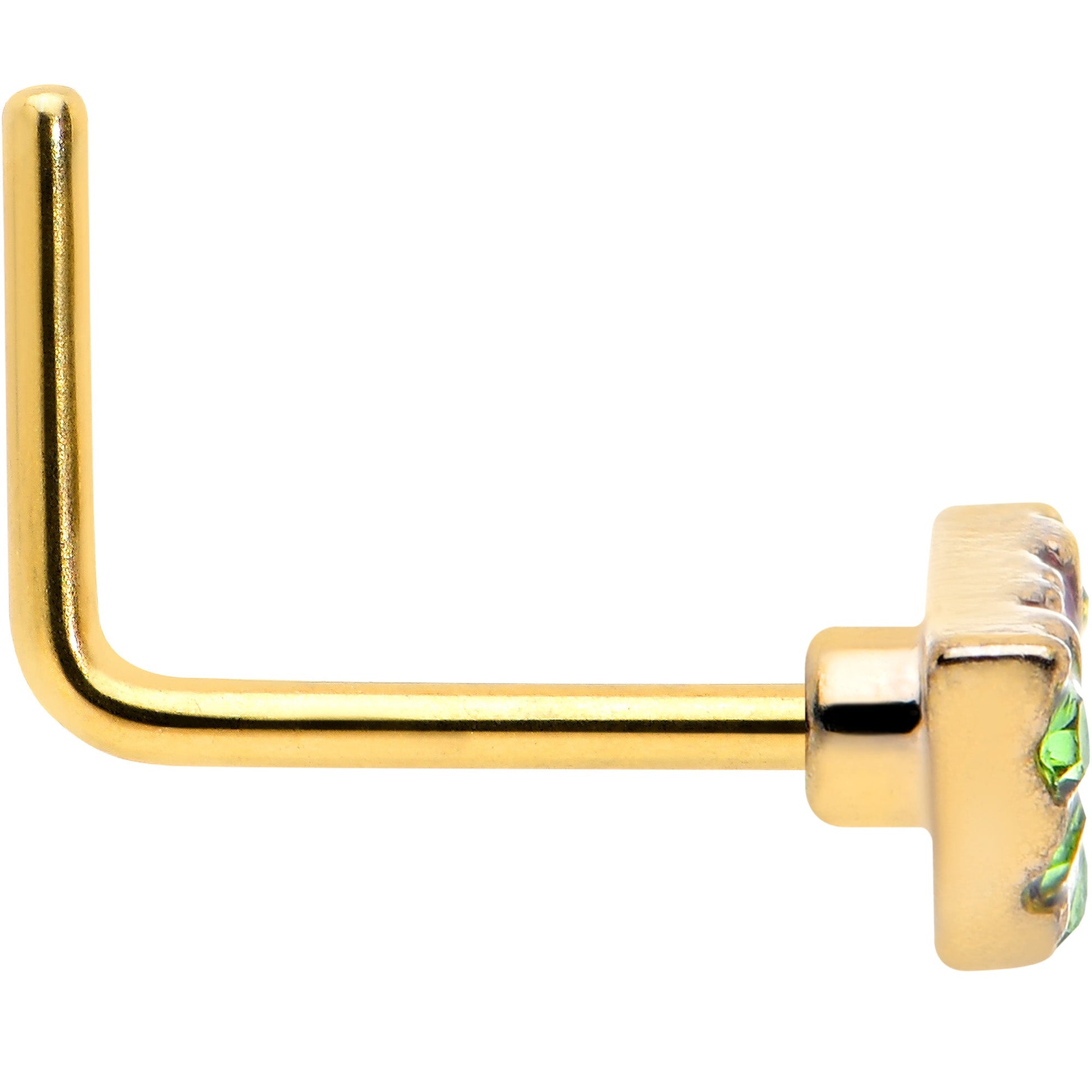 20 Gauge 7mm Pink Gem Gold Tone Watermelon Yum L Shape Nose Ring