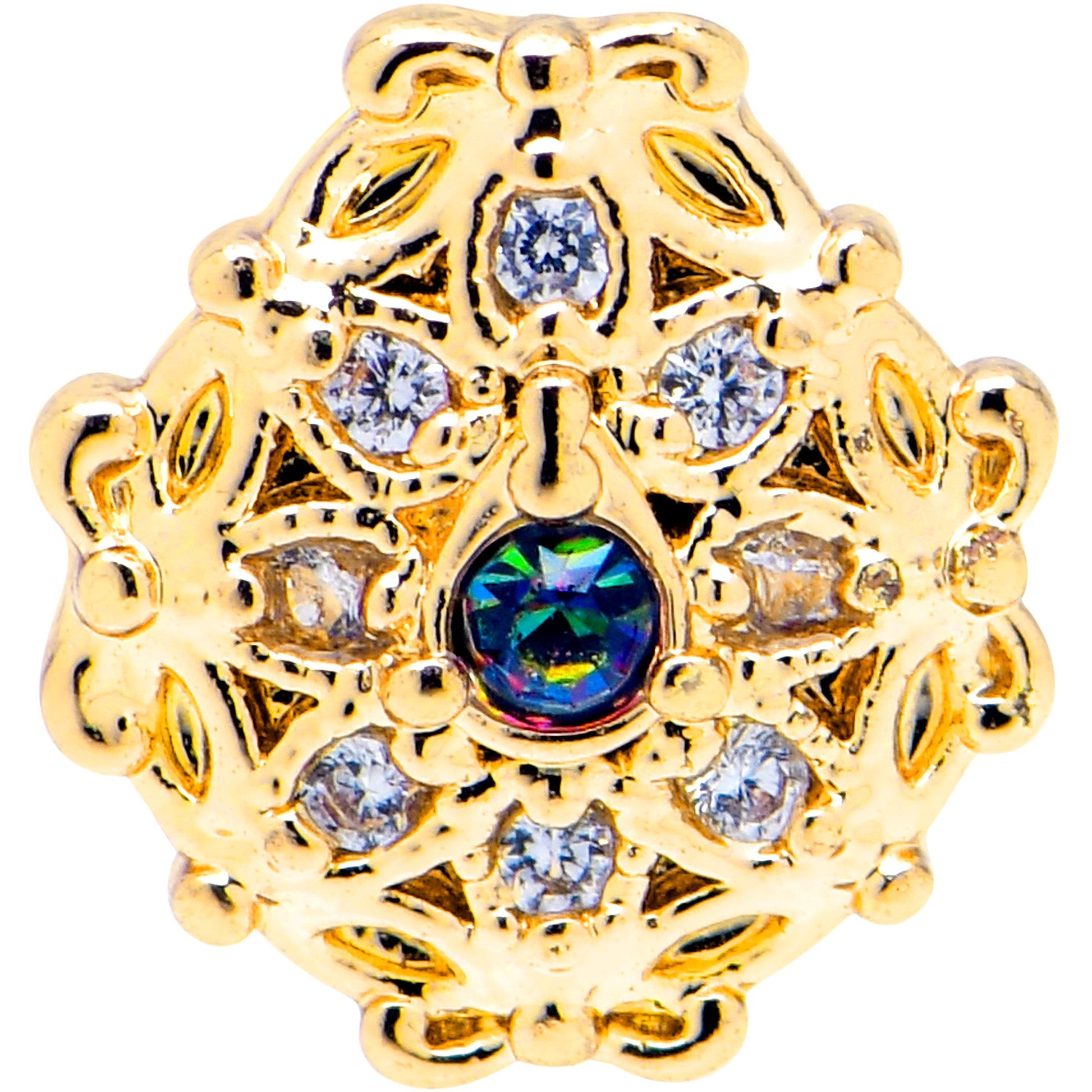 16 Gauge 1/4 Vitrail Gem Gold Tone Blossom Bloom Cartilage Earring