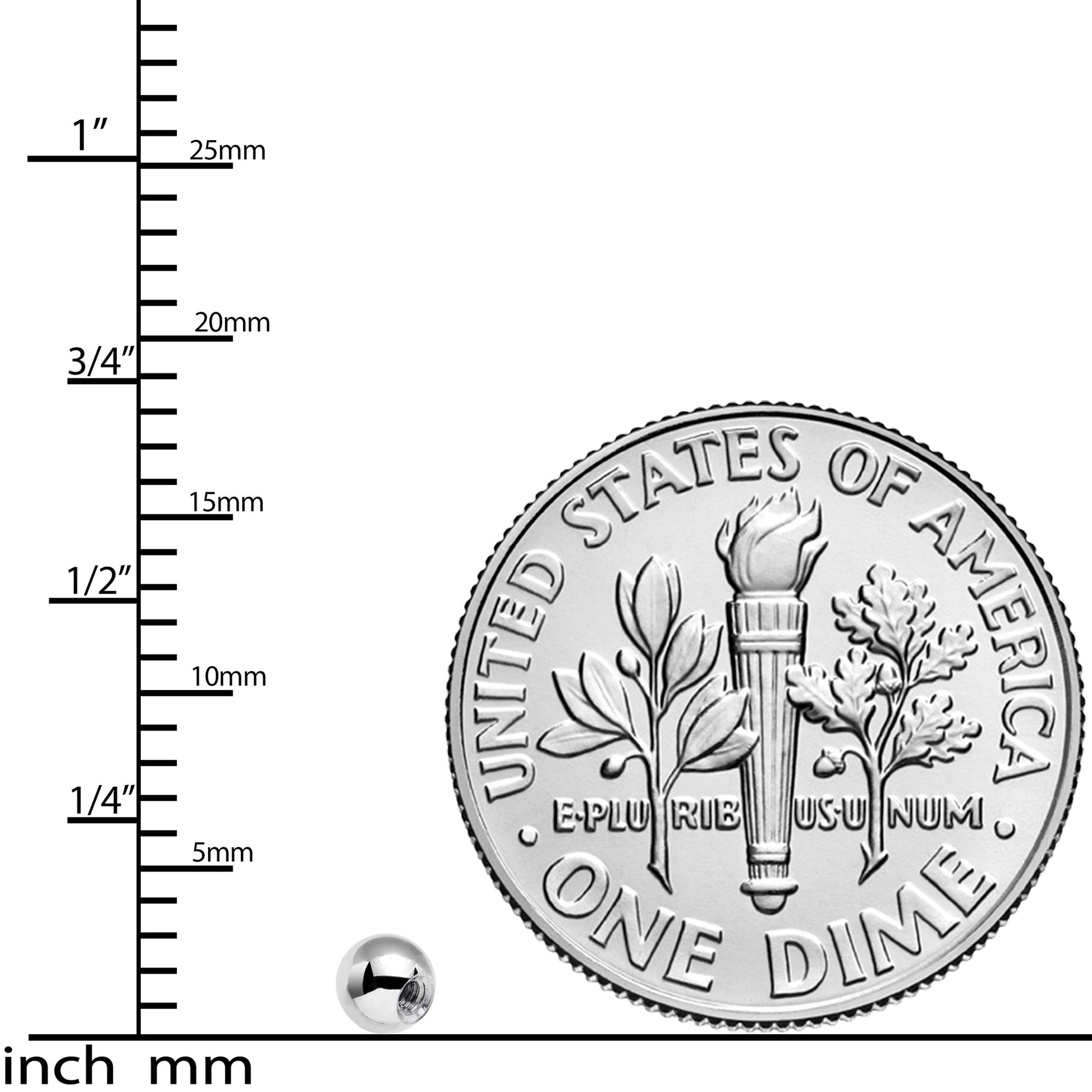 3mm, 316L Stainless Steel Ball End, Fits 16 Gauge (1.2mm) Barbells, For Externally Threaded Jewelry