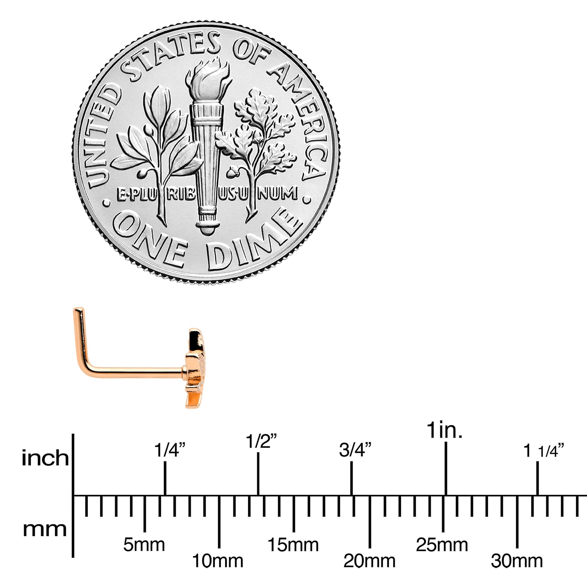 20G 1/4 Rose Gold Tone Texture Pot Leaf L Shape Nose Ring
