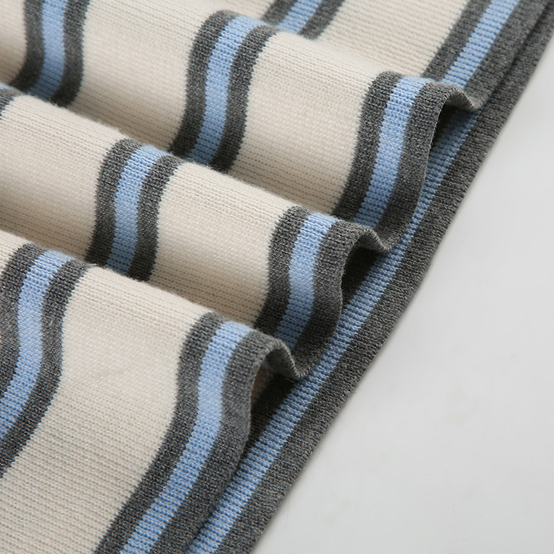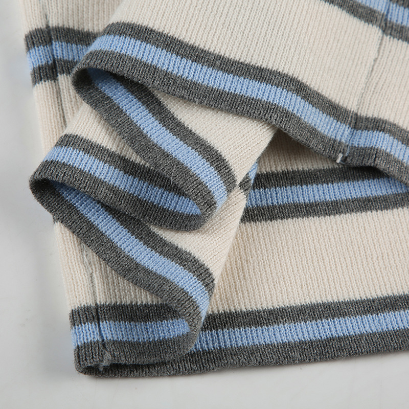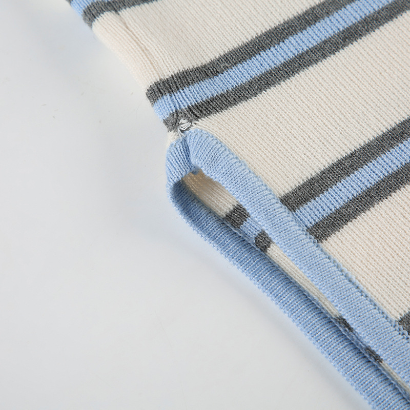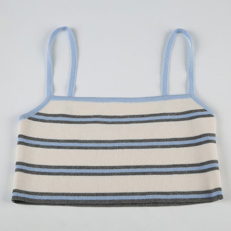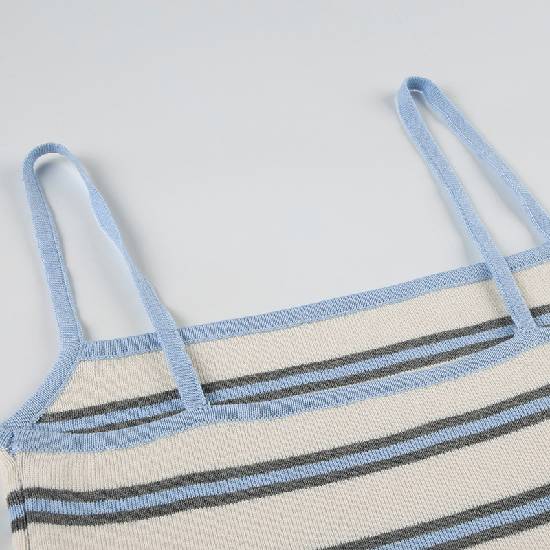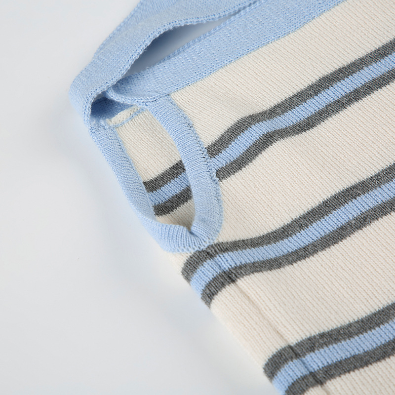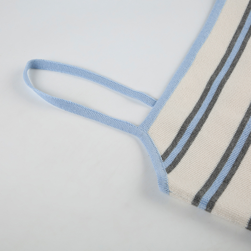 Casual Vacation Knitted Striped Skirt Set Cropped Short Strap High Waist Lace up Skirt Two Piece Set