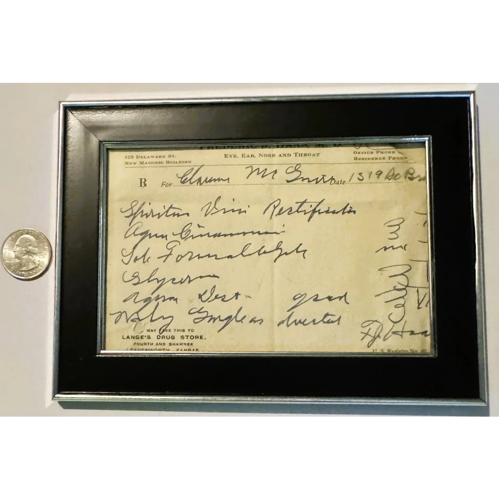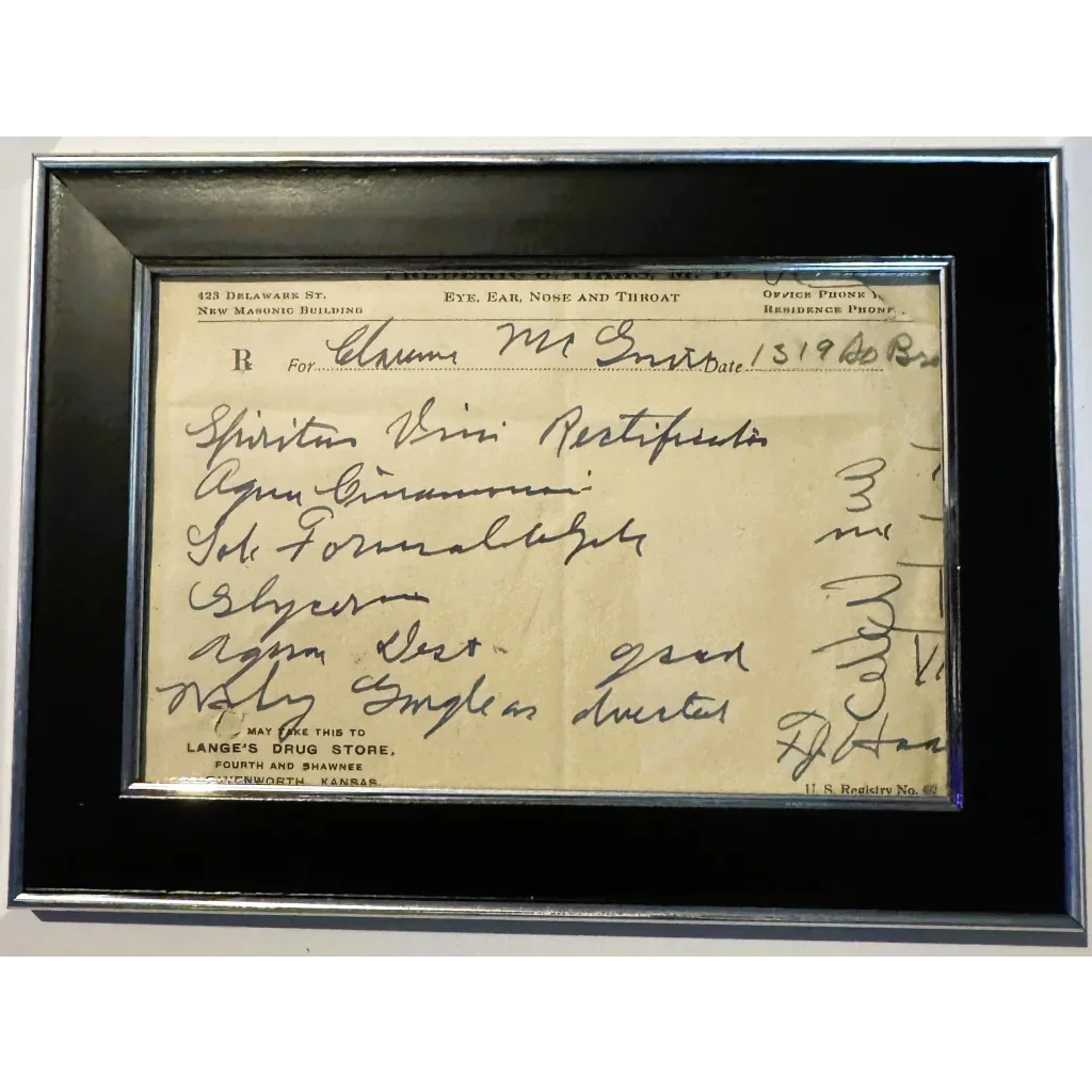 - Description: Picture this: a framed prescription from Lange's Drug Store, featuring the star of the show – formaldehyde. It's not just a piece of paper; it's a time machine that'll transport you back to an era when medical practices were, let's say, a tad adventurous.