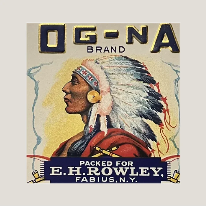 Rare 1920s Native American Antique Gold Label from Fabius NY