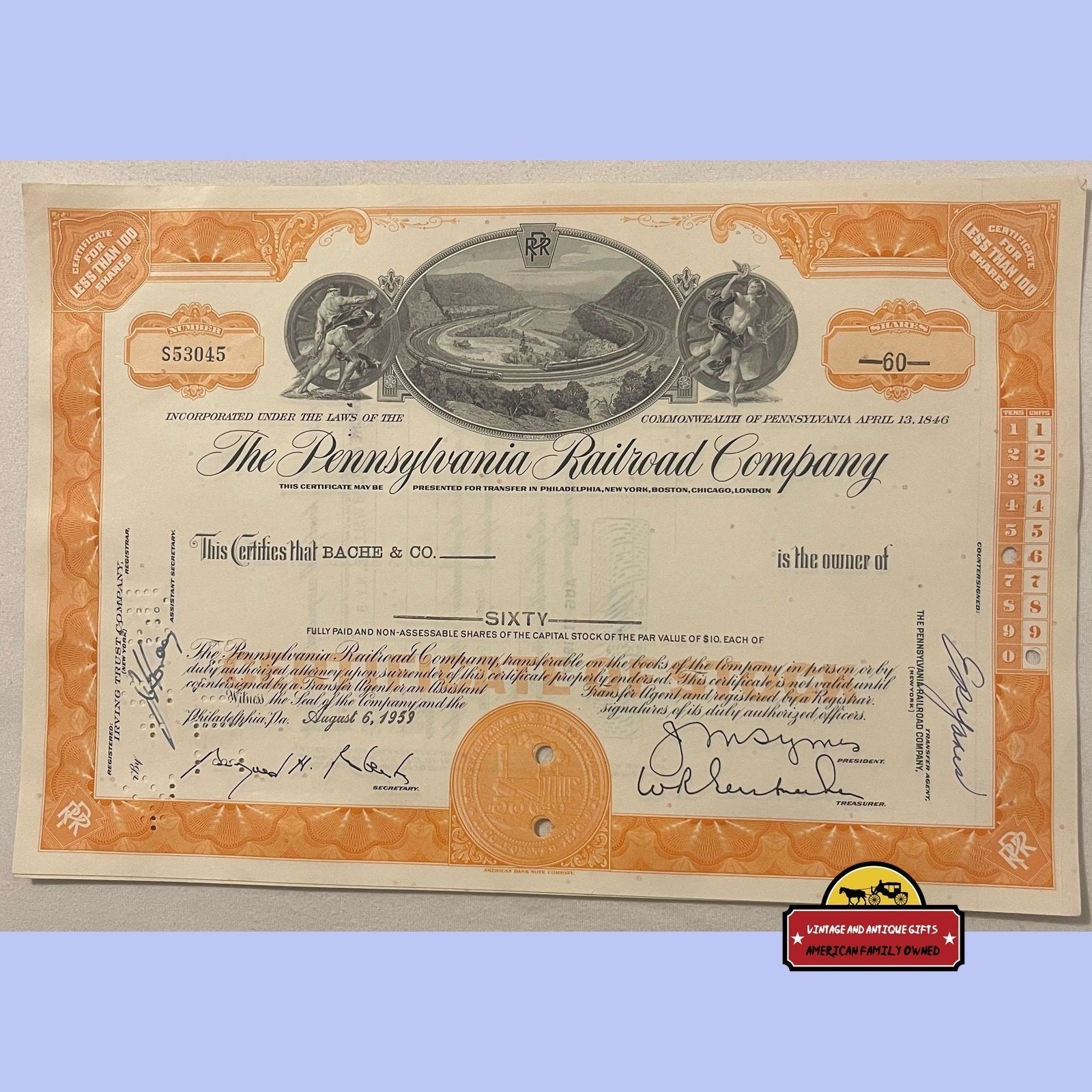 Embark on a thrilling journey through American railroad history with the Vintage Pennsylvania Railroad Stock Certificate Orange! This extraordinary piece of Americana showcases the legendary Horseshoe Curve, a marvel of 19th-century engineering. Representing 100 Shares from the golden era of the 1950s—1960s, this rare gem is not just a certificate—it's a tangible connection to the Pennsylvania Railroad, the very same titan of industry immortalized in the beloved Monopoly board game. Owning this piece of history is more than just a tribute; it's an exhilarating dive into the heart of our nation's industrial heritage!