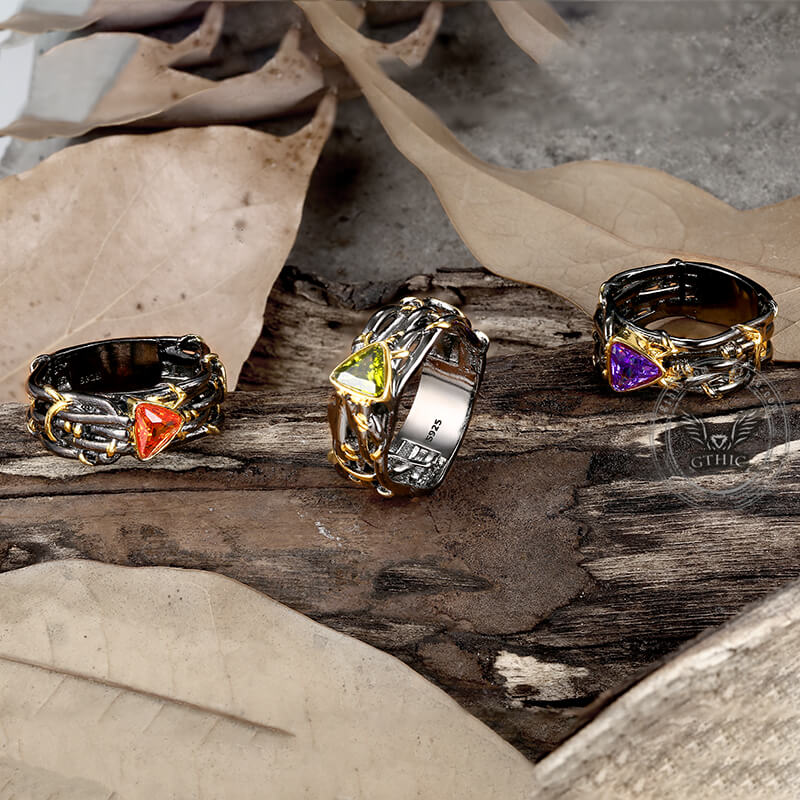 Wear this ring to exude confidence and sophistication. This stunning piece showcases a brilliant triangular-shaped topaz reflecting captivating brilliance, set in an elaborate brass band. The eye-catching combination of vibrant topaz and shimmering brass band will effortlessly enhance any outfit, making you the center of attention at any event.