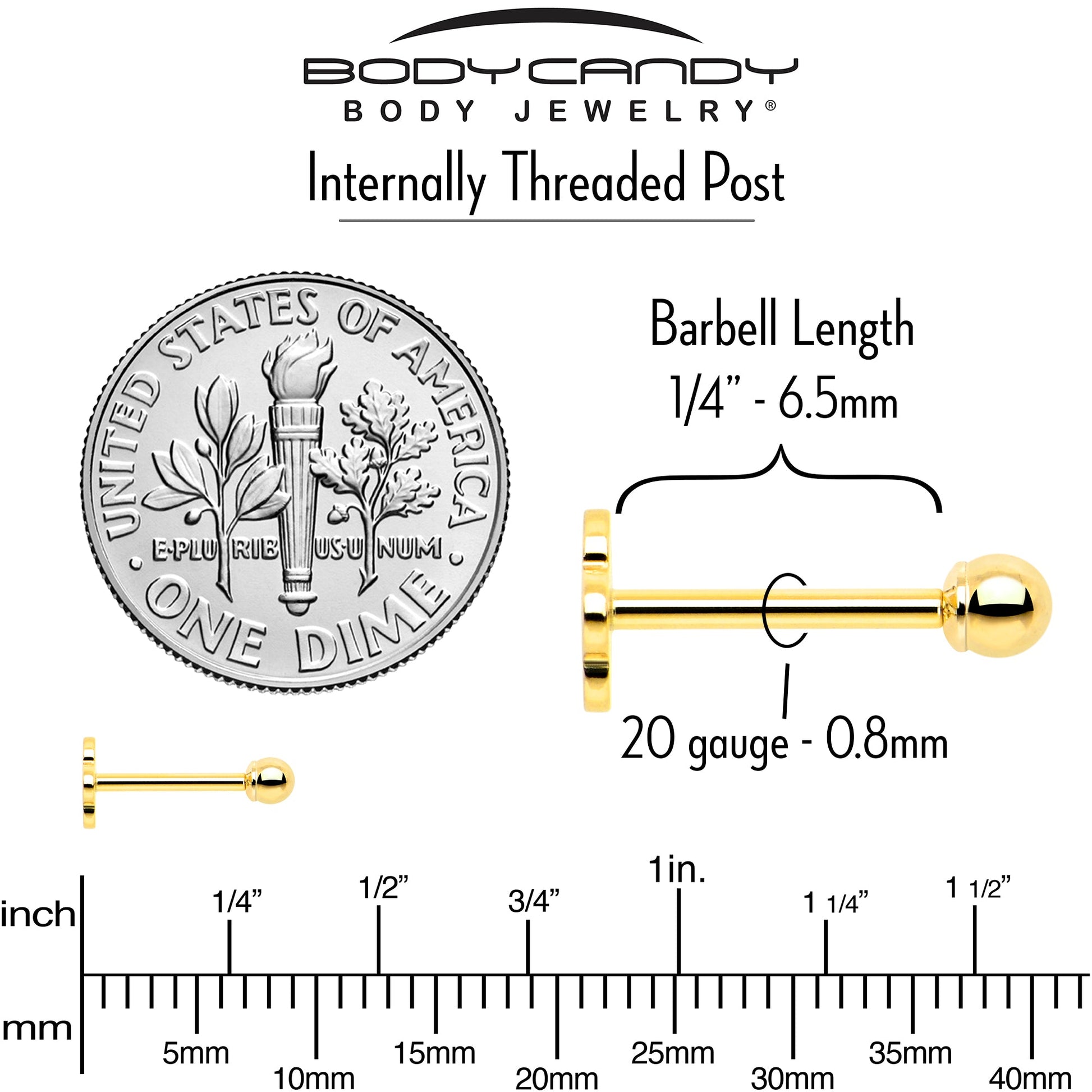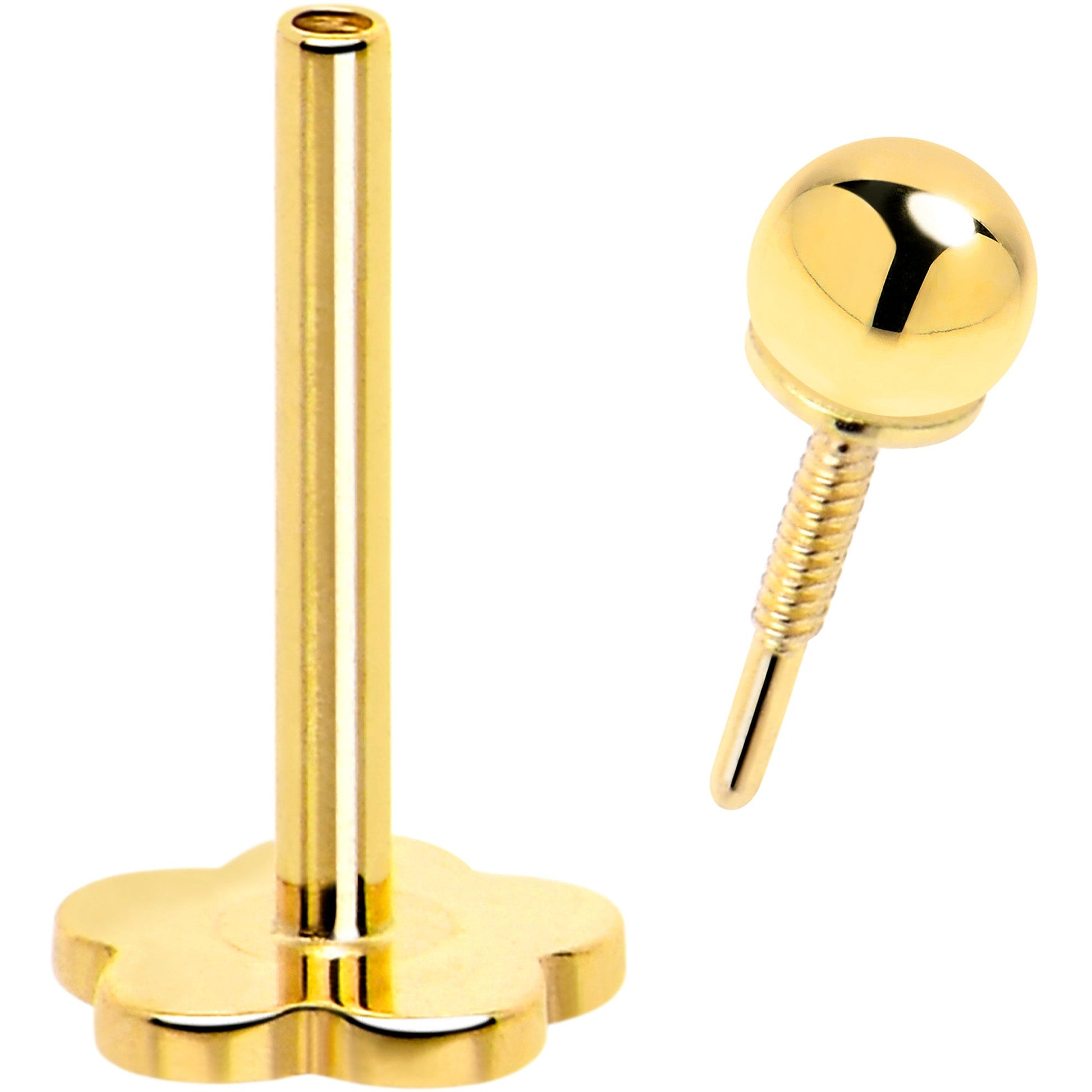 20 Gauge (.8mm), 1/4" (6.5mm) Length Post, Solid 14k Gold, Internally Threaded, Flower Flat Back, 2mm Ball End