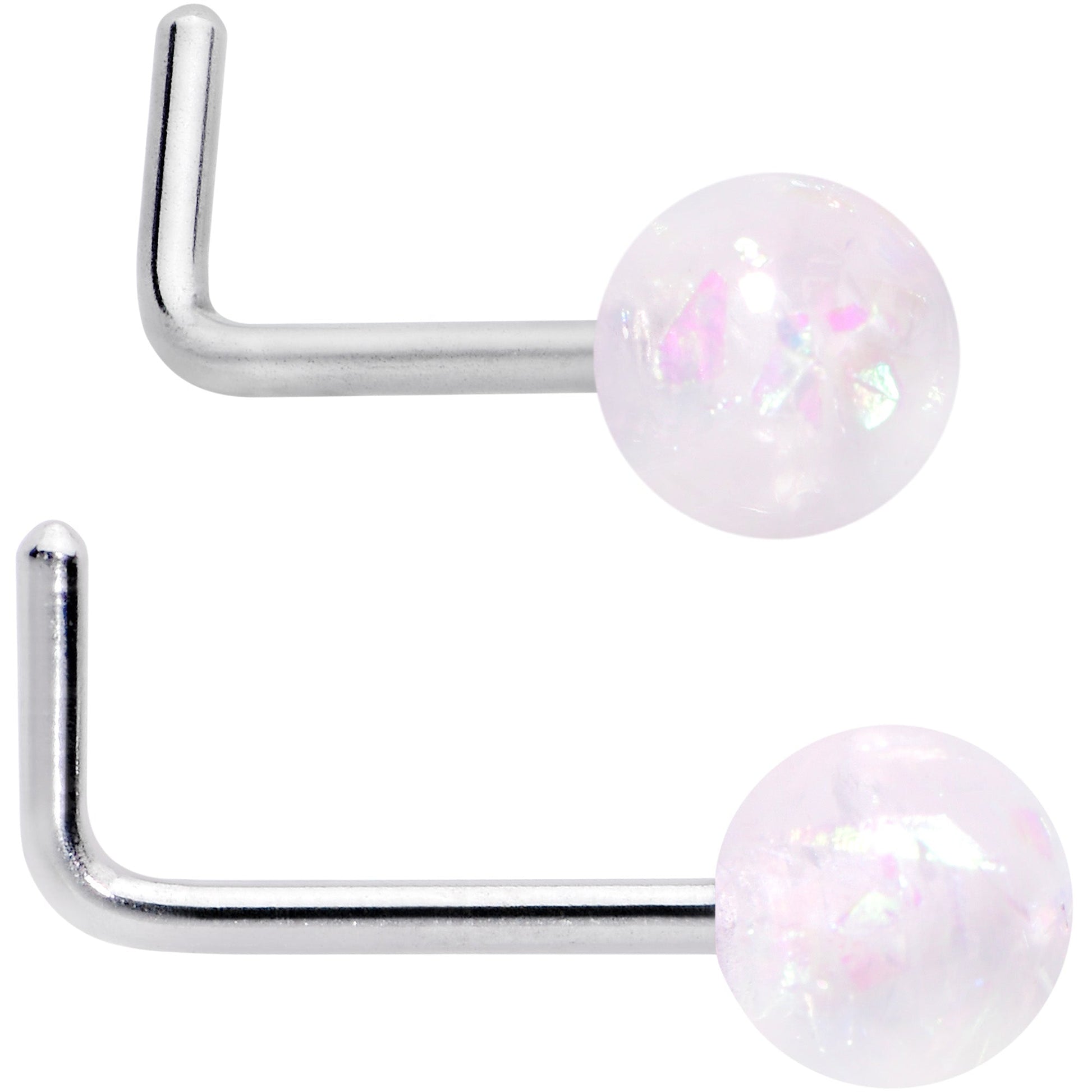 20G 1/4 Pink Gem Purple Pink Faux Opal Pack L Shape Nose Ring Set of 6
