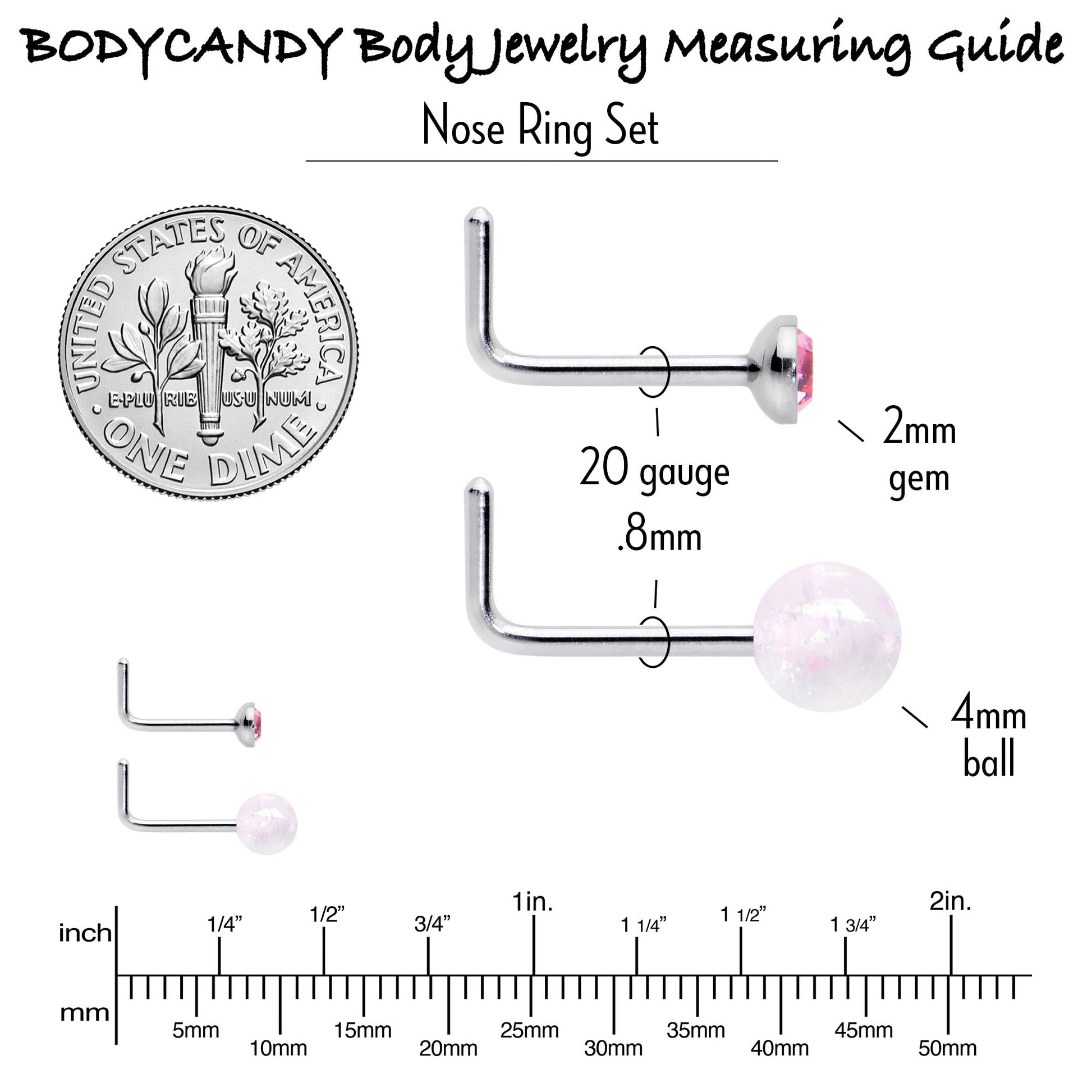 20 Gauge 1/4 Pink Gem Purple Pink Faux Opal Pack L Shape Nose Ring Set of 6