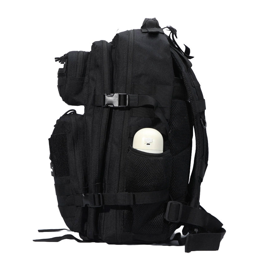 Comes with Velcro upper pocket . Check our patches page to personalize. By default our backpack comes with all the patches (removable) - With Side Pockets, For Water Bottle And Other Stuff ( bottle not included)