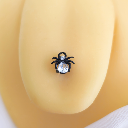 Clear Gem Black Sharp Looking Spider Barbell Tongue Ring