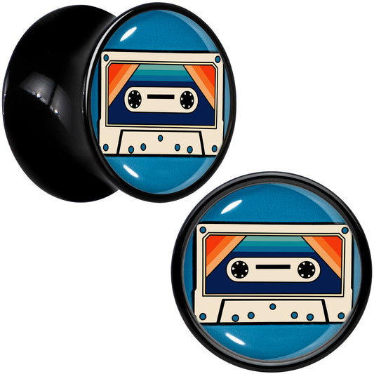 Black Acrylic Retro Cassette Double Flare Plug Set by Onyx O