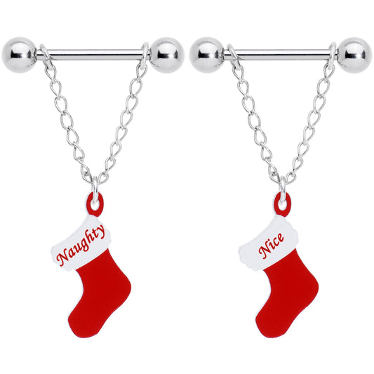 Handmade 14G 5/8 Naughty Nice Christmas Stocking Nipple Ring Set