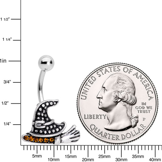 Yellow Gem Witch Hat Broom Halloween Belly Ring