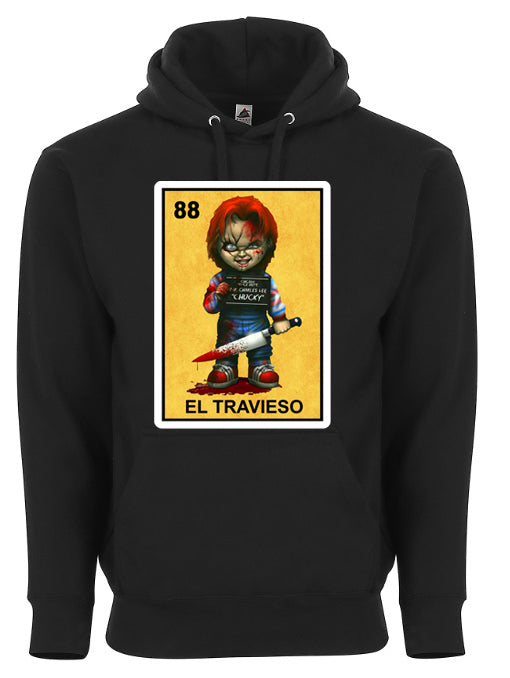 El Travieso Chucky Childs Play Loteria Mexican Bingo Style Graphic Tee Shirt