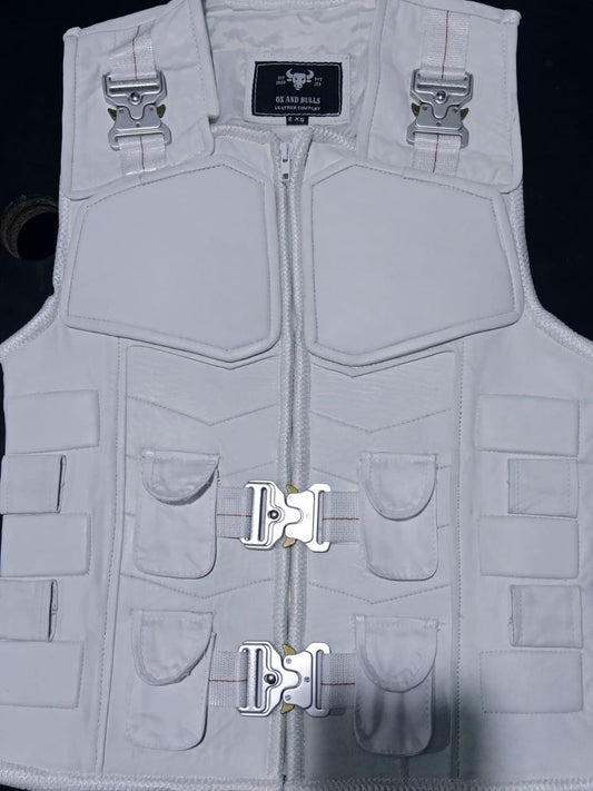 Handmade Weeknd XO White Vest with Diamond XO in the back and Heavy metal buckles