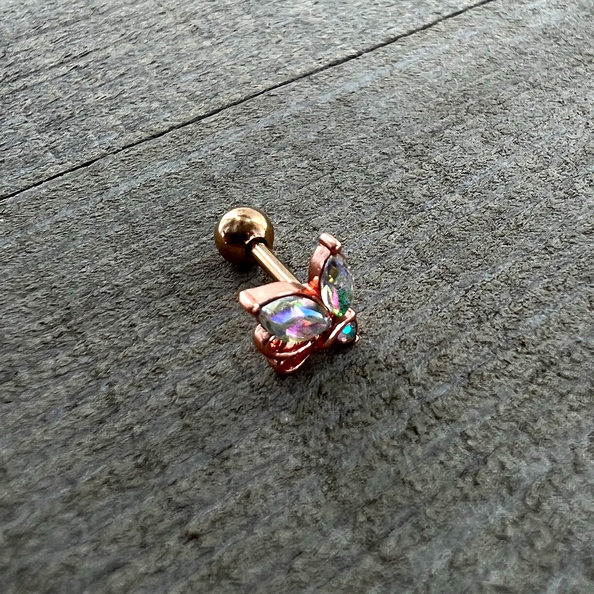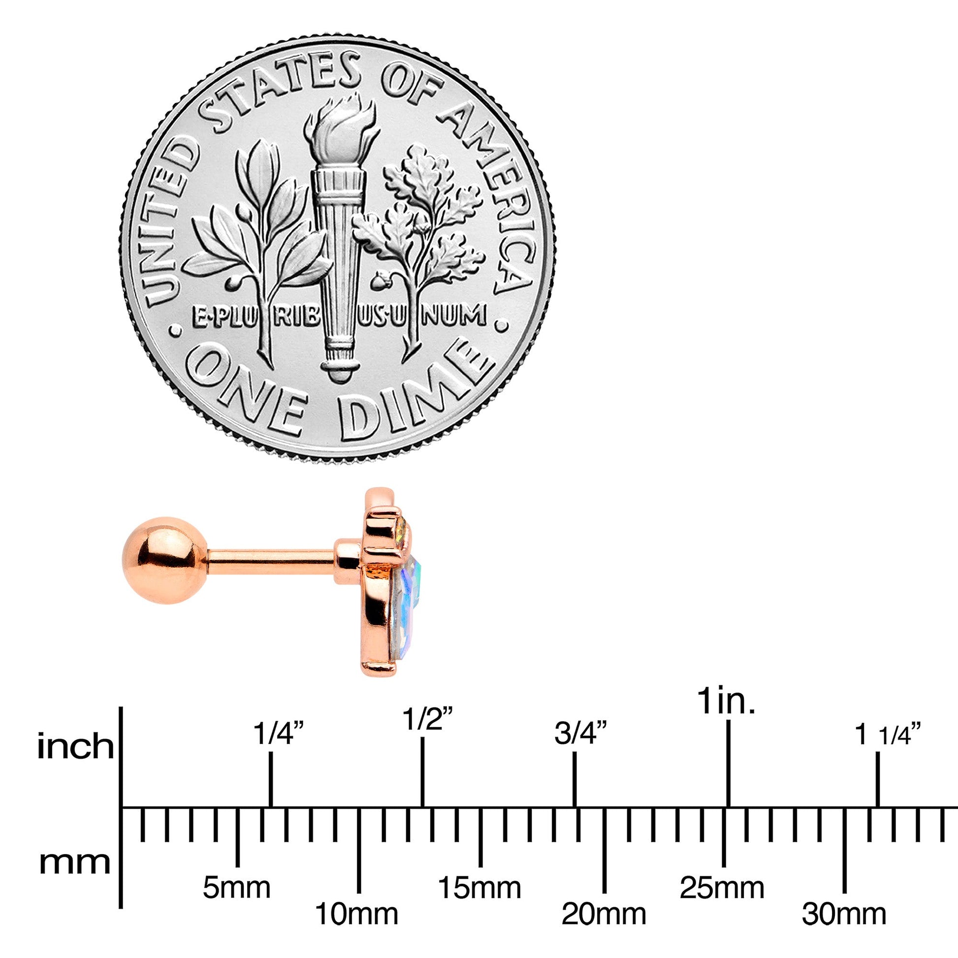 16 Gauge 1/4 Aurora CZ Gem Rose Gold Hue Fleur de Lis Cartilage Earring