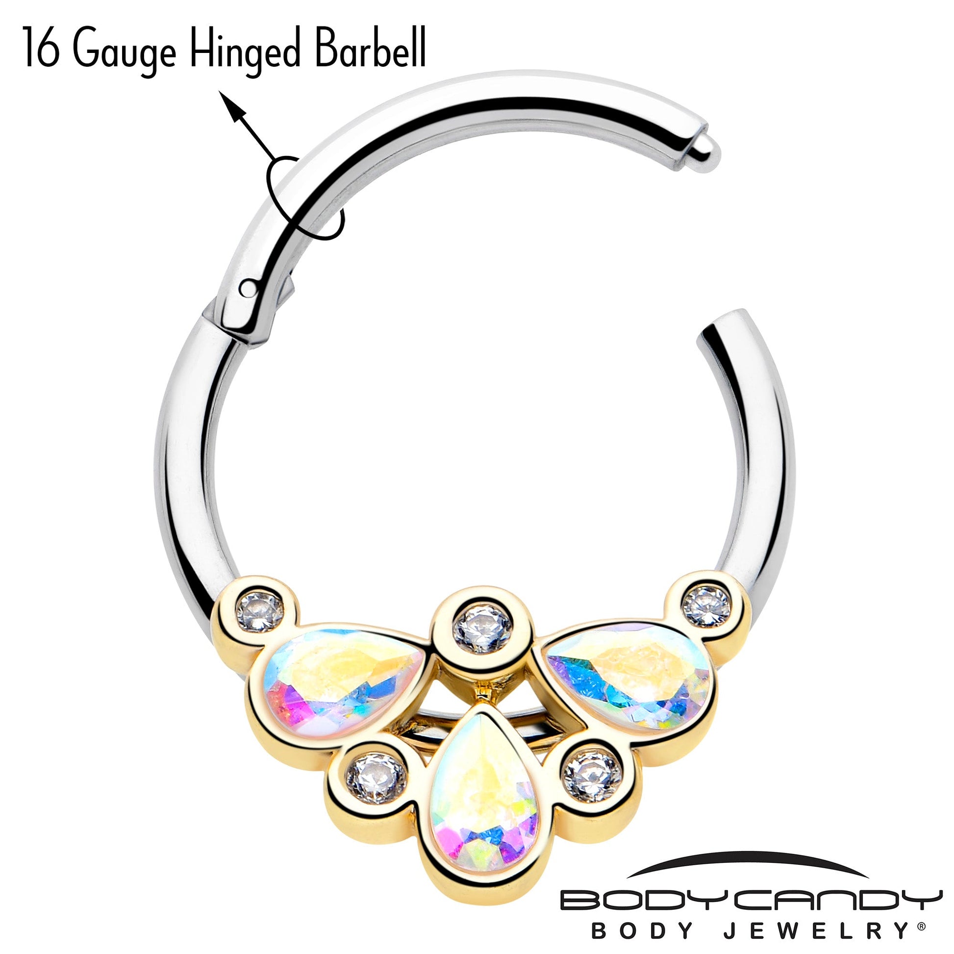 16G 3/8 Aurora Gem Golden Crown Deluxe Hinged Segment Ring