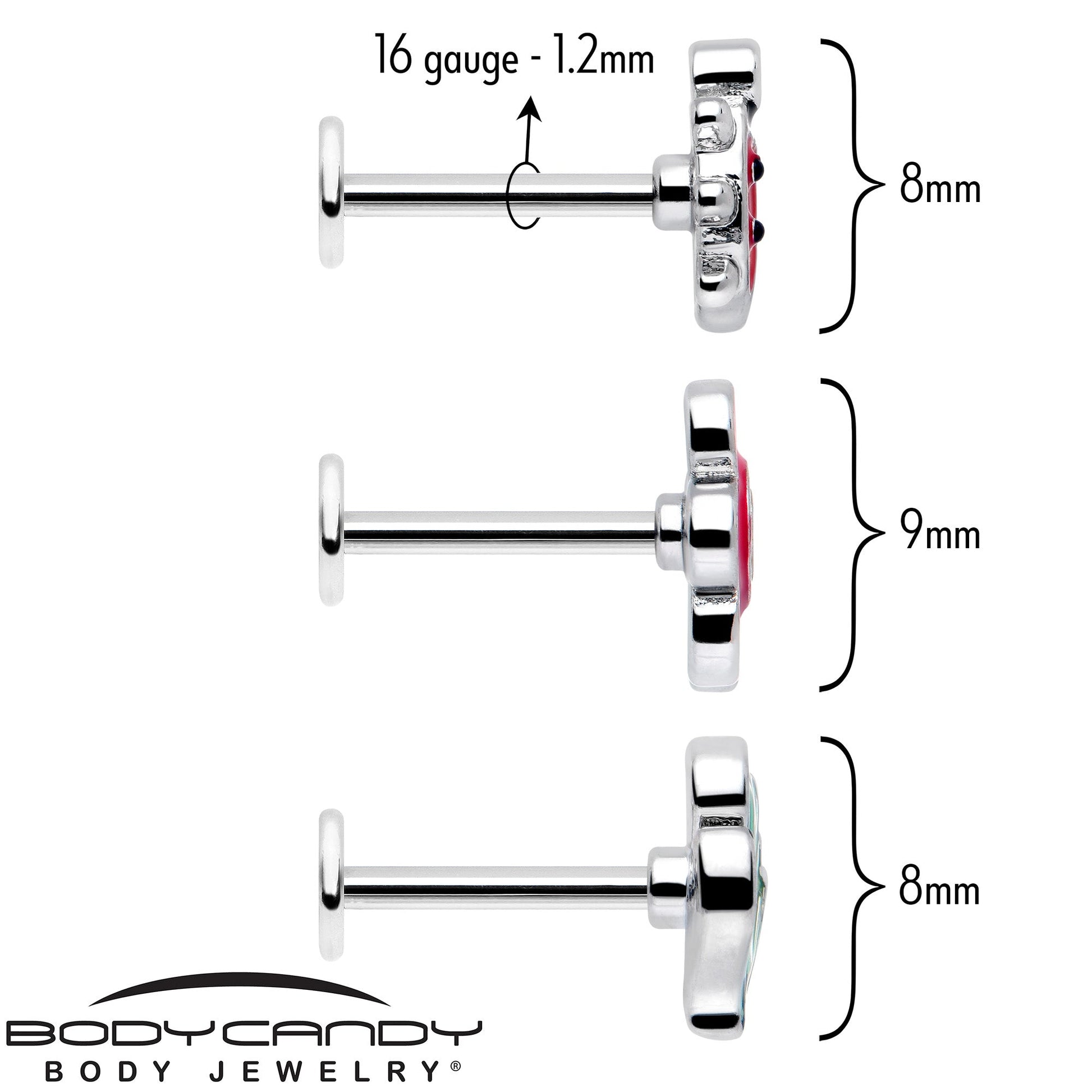 16 Gauge 5/16 Ladybug Hippie Flower Labret Monroe Tragus Set of 3