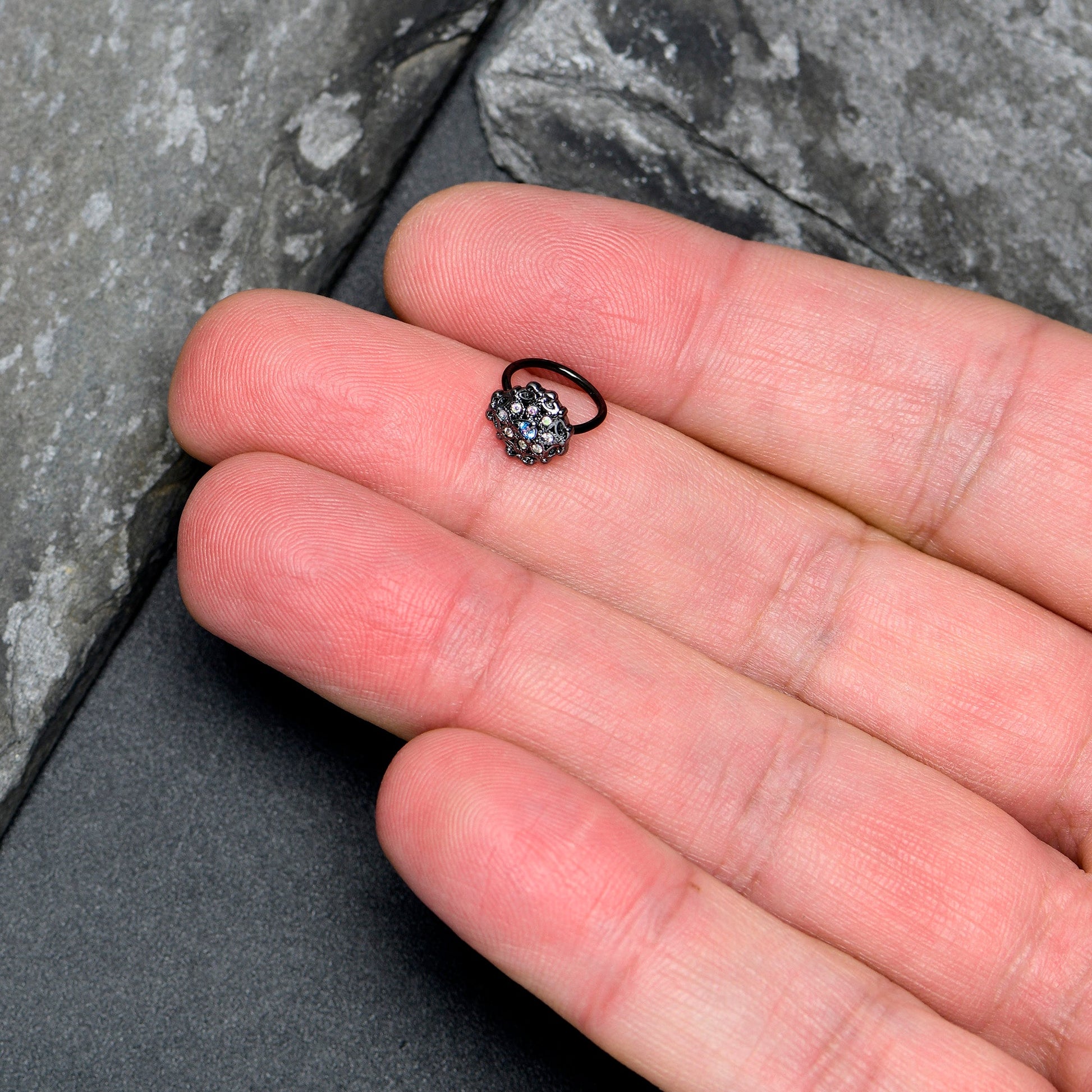 20 Gauge 5/16 Blue Aurora Gem Black Night Blossom Nose Hoop