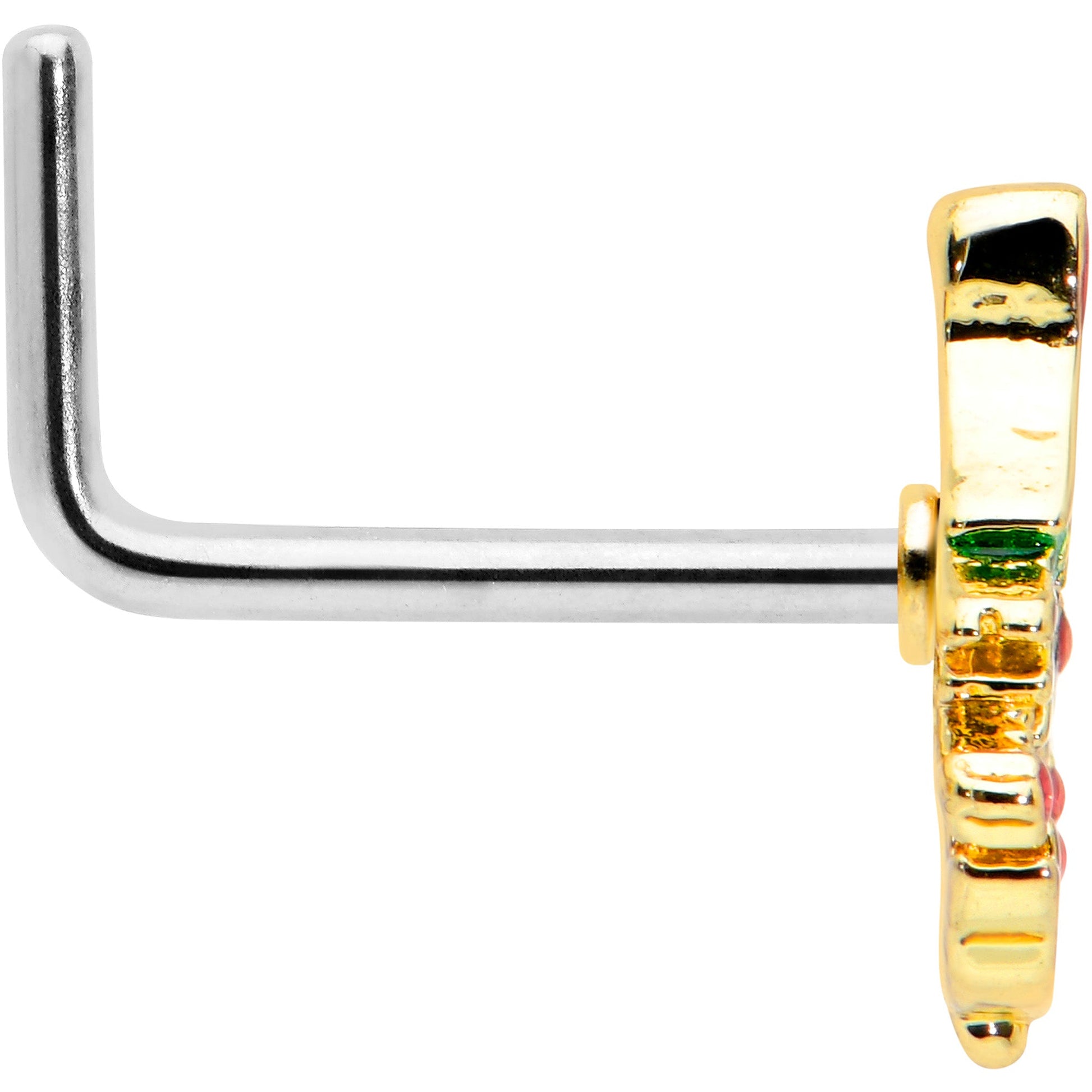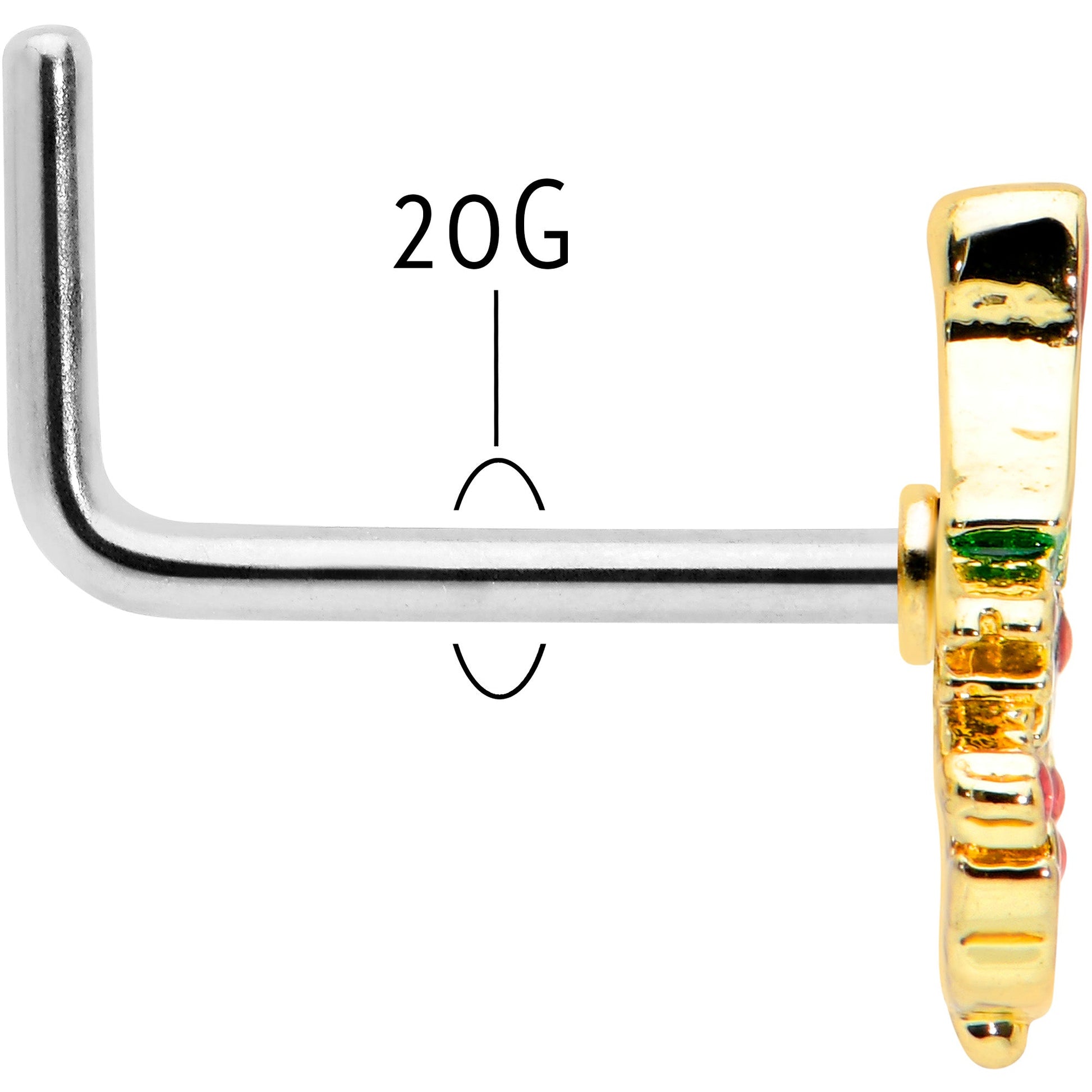 20 Gauge 7mm Red Gem Deco Holiday Tree Golden L Shape Nose Ring