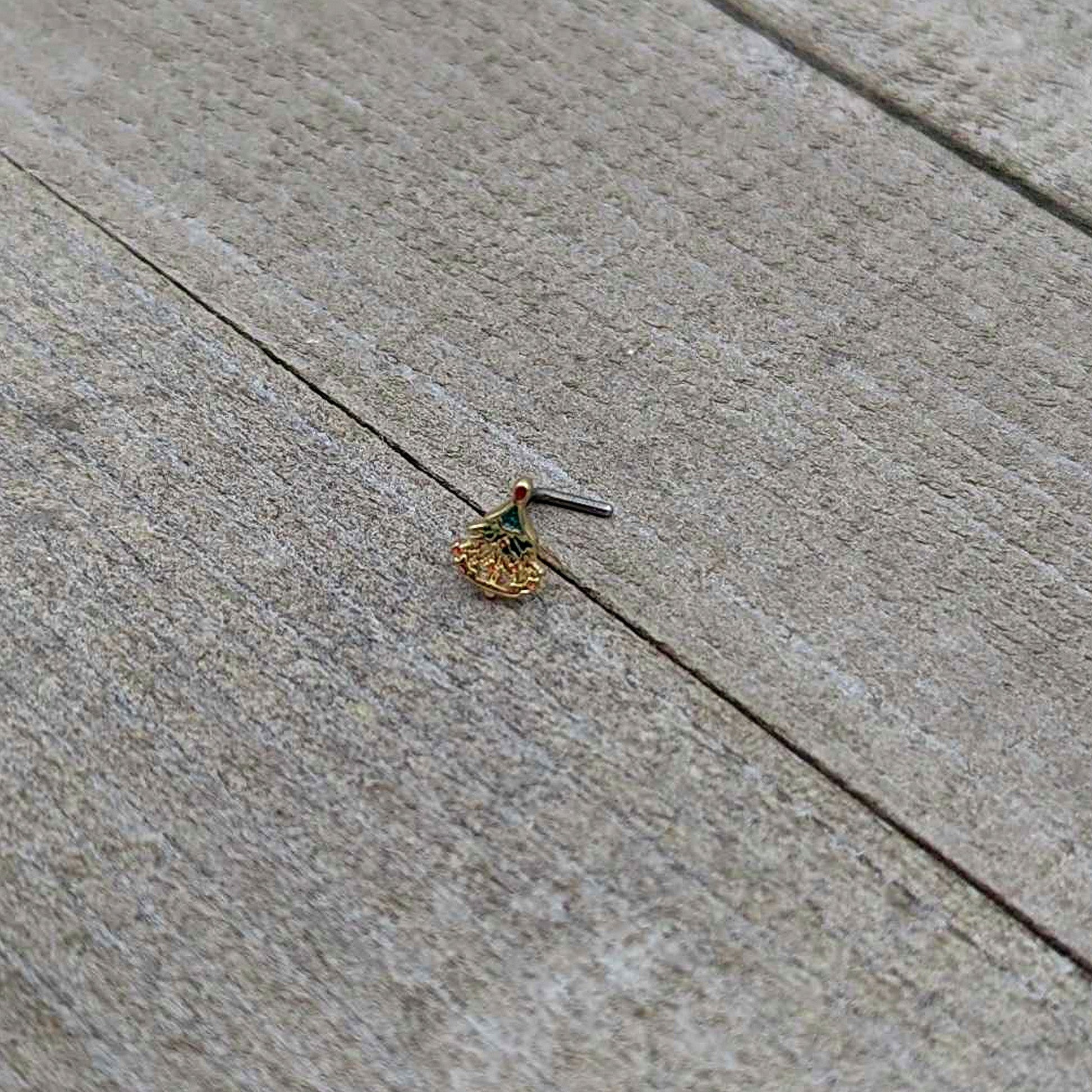 20G 7mm Red Gem Deco Holiday Tree Golden L Shape Nose Ring