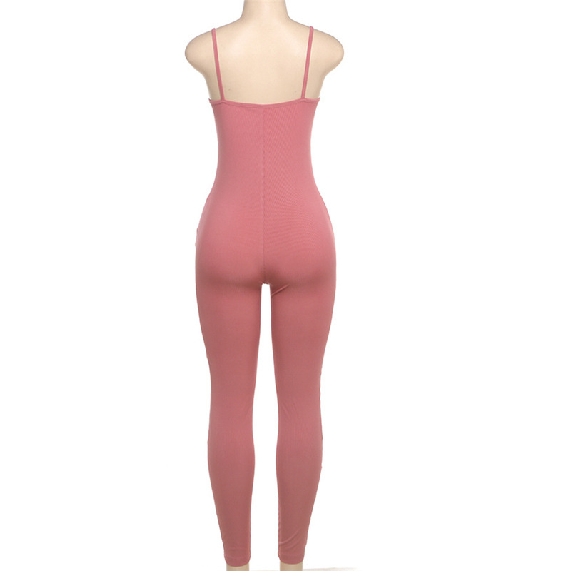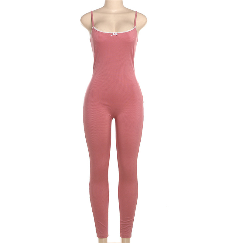Autumn Winter Sexy Tight Low Cut Solid Color Trousers Strappy Bow Jumpsuit