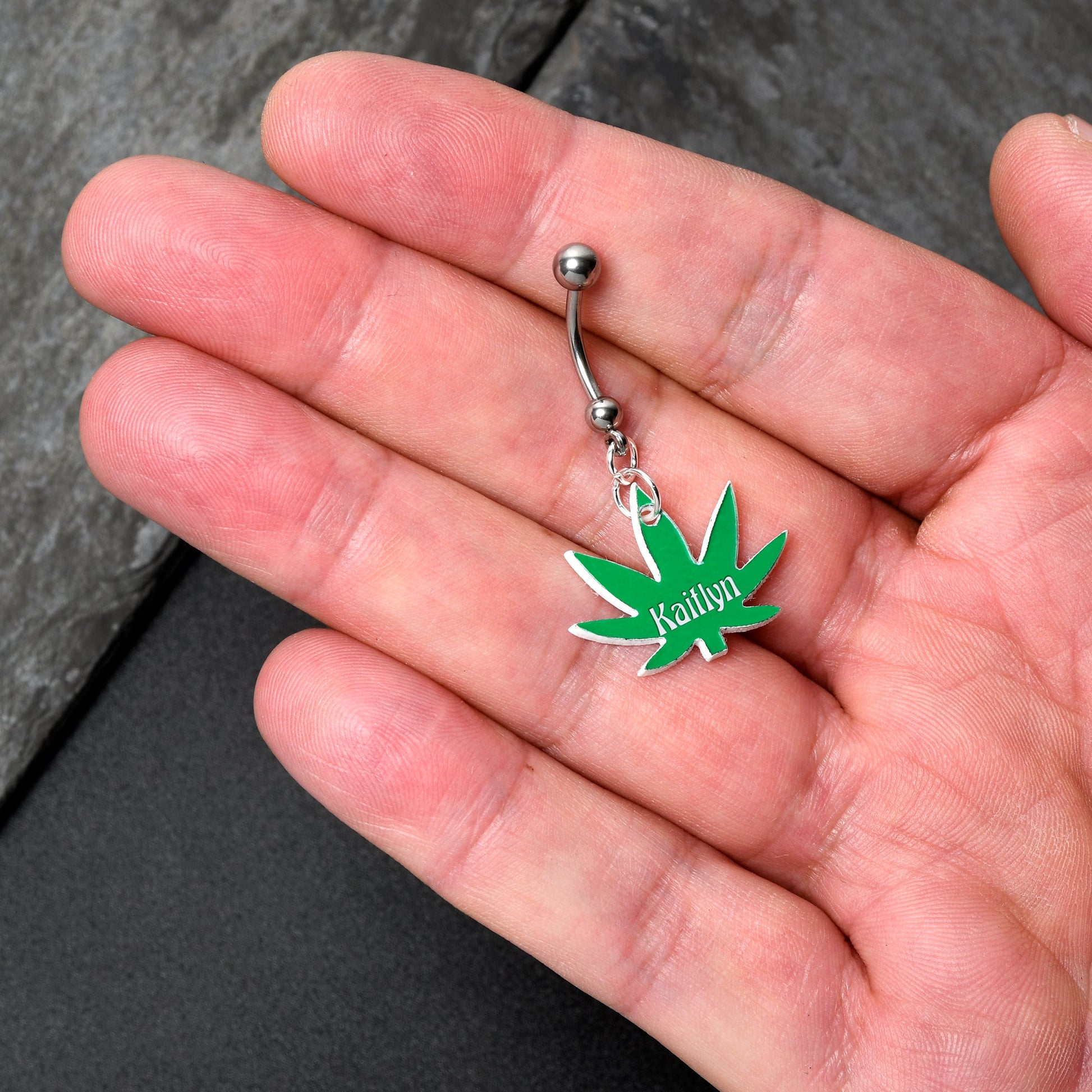 Hypoallergenic belly ring for sensitive skinCustom Marijuana Pot Leaf Personalized Dangle Belly Ring