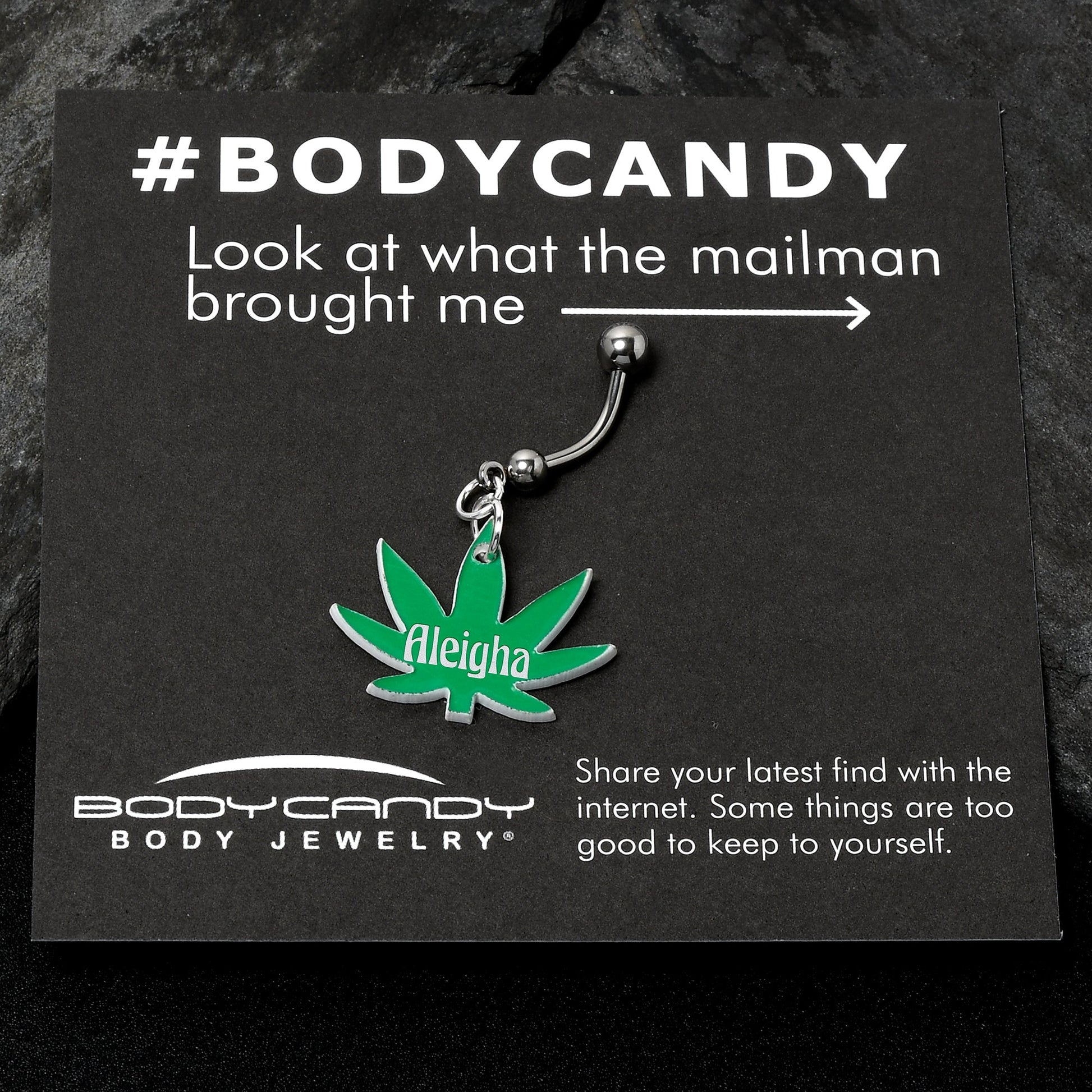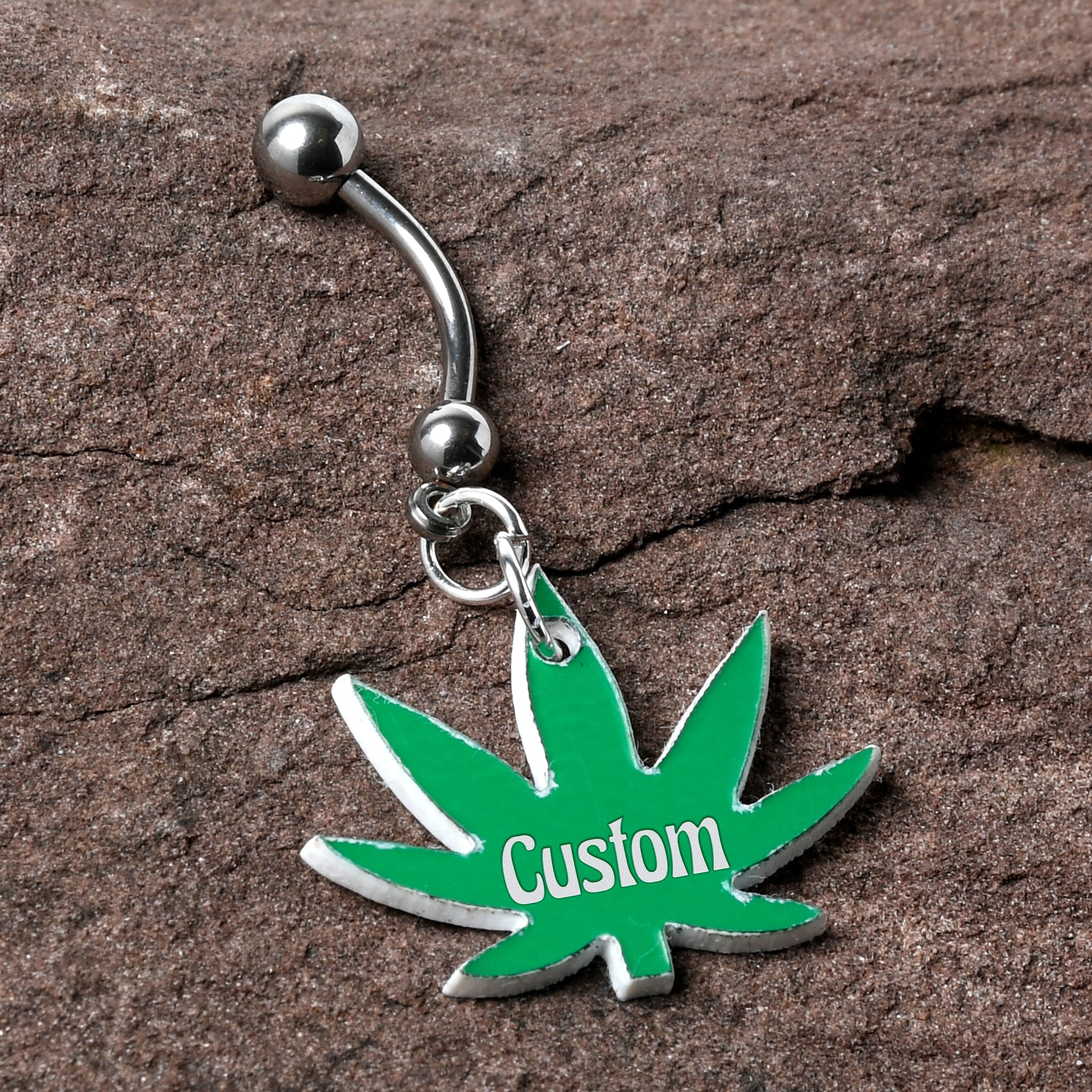 Custom Marijuana Pot Leaf Personalized Dangle Belly Ring