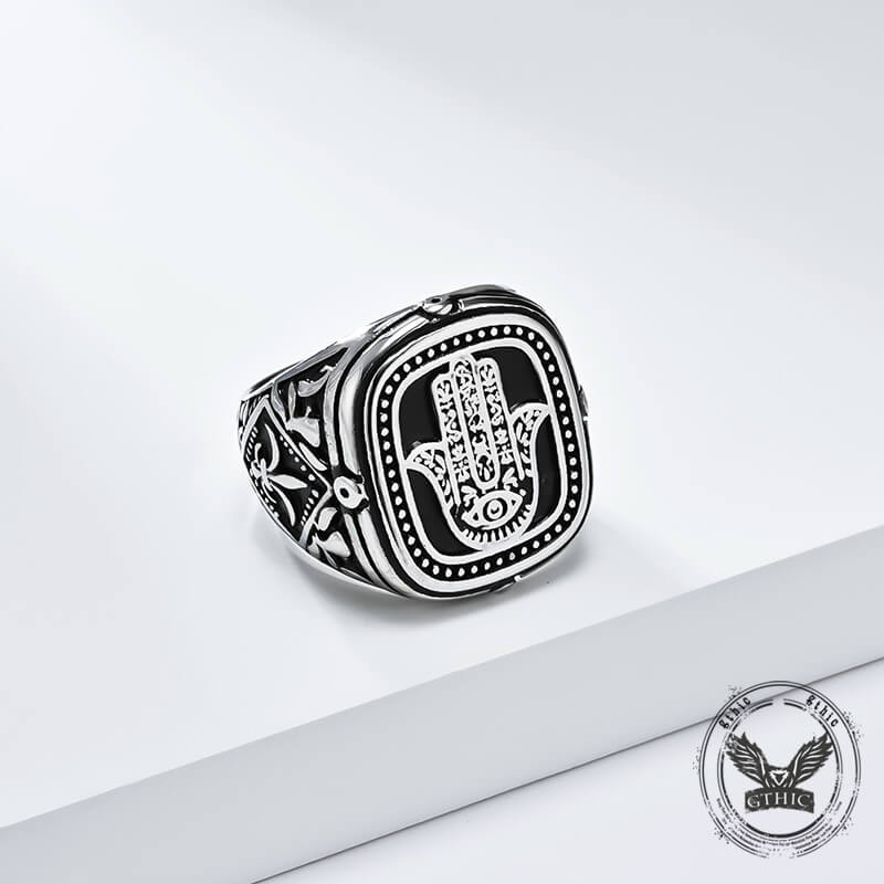 This Vintage Hand of Fatima Stainless Steel Ring is a perfect blend of style and symbolism. Crafted from durable stainless steel, this ring features the Hand of Fatima symbol which is believed to bring protection, luck, and good fortune. Add a touch of cultural significance to your wardrobe with this unique and elegant piece.